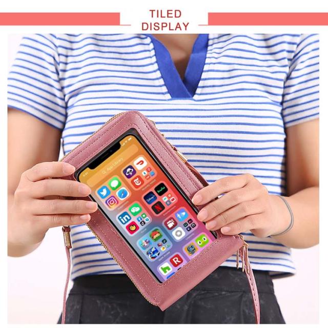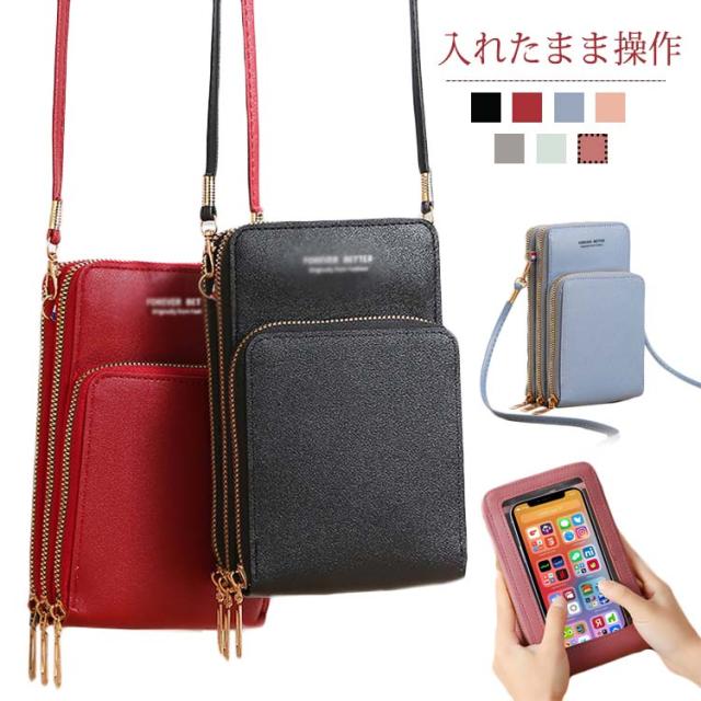 タッチパネル スマホポーチ ポーチ スマホショルダーバッグ 入れたまま操作 iPhone 携帯ポーチ 大容量 ストラップ おしゃれ 仕切り バッグ ミニポーチ 軽量 肩掛け 斜めがけ 斜め掛けポーチ 縦型 プレゼント 送料無料