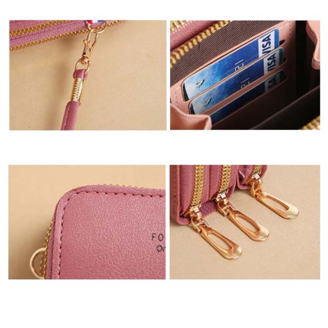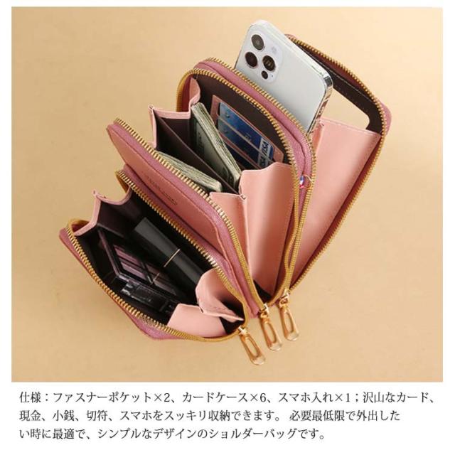 | タッチパネルに対応でスマートフォンを入れてそのまま操作可能なマルチ収納ポーチ,マチが広いので、ある程度の厚みのものでも収納できます。 仕様:ファスナーポケット×2、カードケース×6、スマホ入れ×1;沢山なカード、現金、小銭、切符、スマホをスッキリ収納できます。 必要最低限で外出したい時に最適で、シンプルなデザインのショルダーバッグです。 素材:PUレザー;高品質のPUレザーを使用しており、丈夫で触感が柔らかくて、手傷やカジリを防ぐことが出来ますので、長い時間でも使用できます。 使いやすい長めベルトで約130cmありますので斜め掛け、肩掛け、自由自在にご使用いただけます。 | |