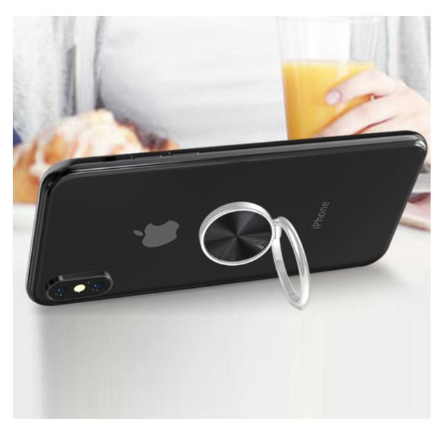 | 180°動くリングで、好きな角度で画面をみることができます。 5000回折りたたんでもリングが緩まないテスト済み。 リングに指を通して持つことで落下防止に役立つ。 また、画面に触れる範囲が広くなり、片手操作が楽になります。 | |