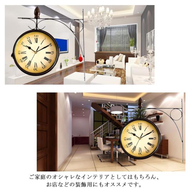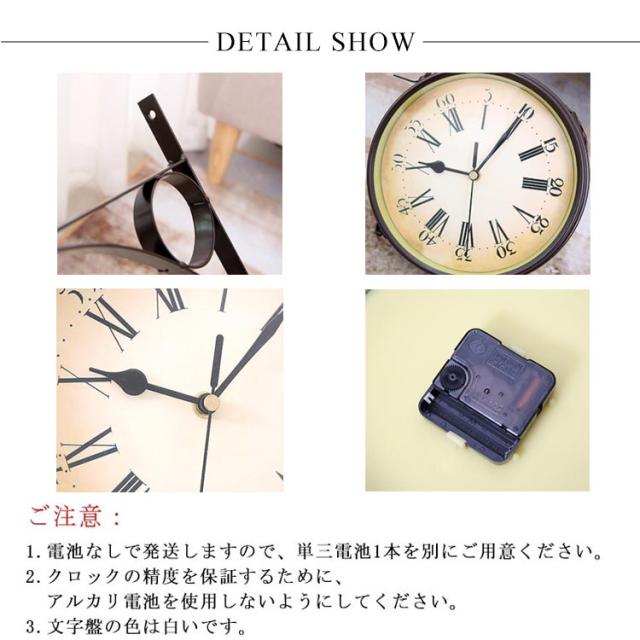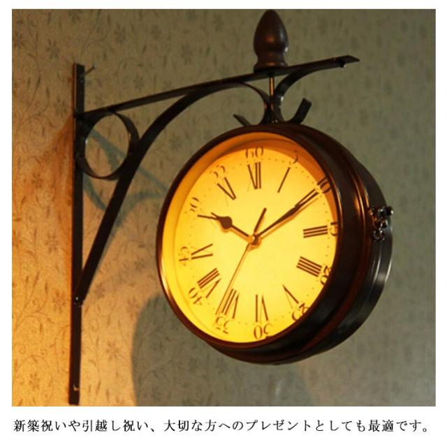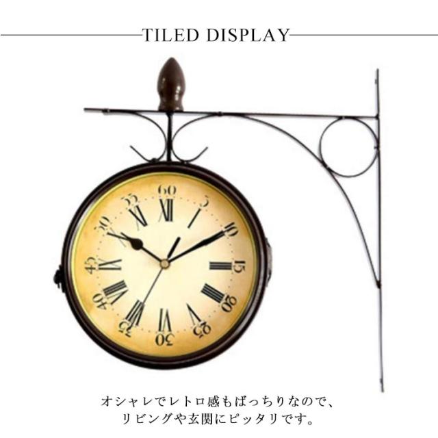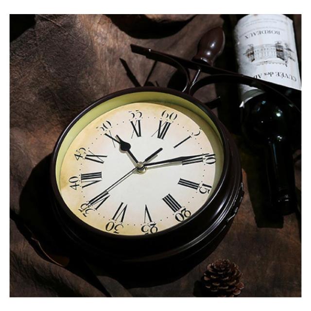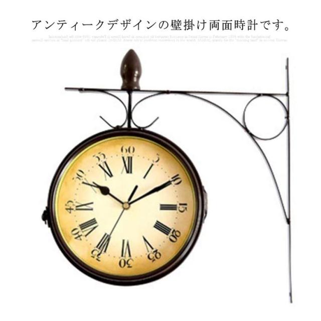 壁掛け時計 アンティーク レトロ調 両面用 時計 壁掛け 丸型 ウォールクロック クラシック インテリア お洒落 雑貨 リビング 玄関 静音 電池式