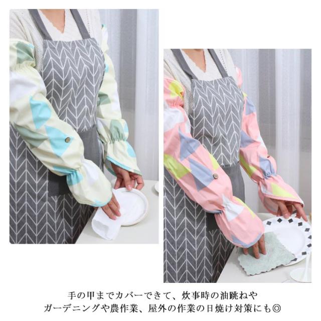 手甲付き腕カバー 腕抜き アームカバー 送料無料 撥水加工 袖カバー おしゃれ 幾何学模様 園芸 農作業 ガーデニング ドット柄 キッチン