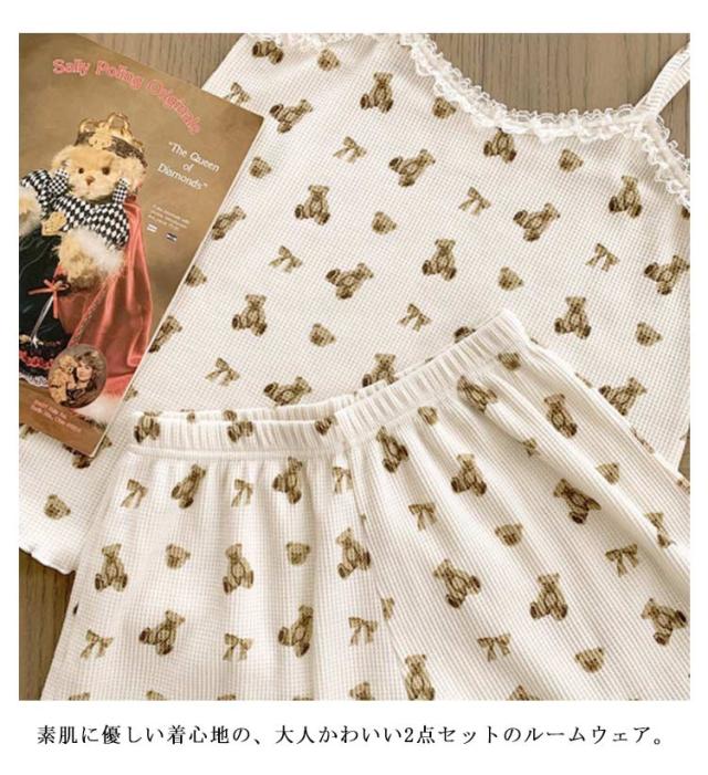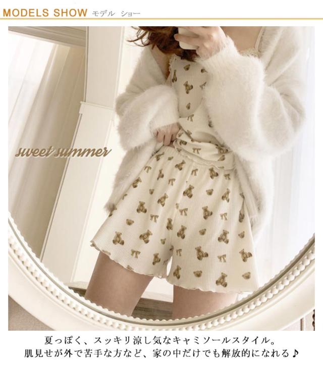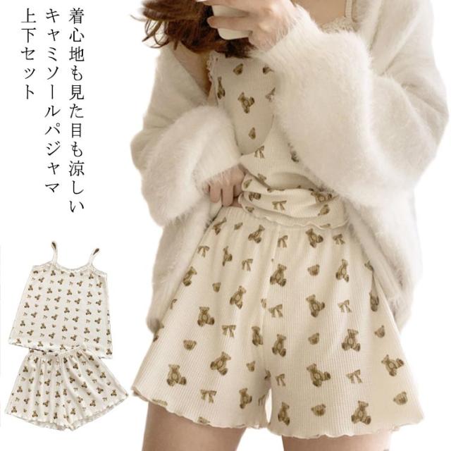 【送料無料】パジャマ レディース キャミソール かわいい 上下セット 夏用 2点セット 涼しい おしゃれ ショートパンツ 大きいサイズ ルームウェア 部屋着 寝間着 寝巻き 薄手 旅行 ひんやり クマ フリル ギフト プレゼント M L XL 2XL