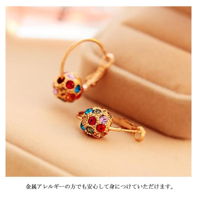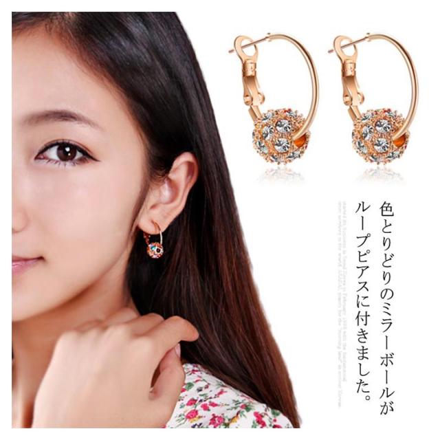 | 色とりどりのミラーボールがループピアスに付きました。 くるくると可愛く動きます。 おしゃれなあなたに付けてもらいたい逸品です。 金属アレルギーの方でも安心して身につけていただけます。 普段使いはもちろん、オフィスから結婚式の披露宴や二次会、ちょっとしたお呼ばれの場など多くのシーンで大活躍すること間違いなし。 | |