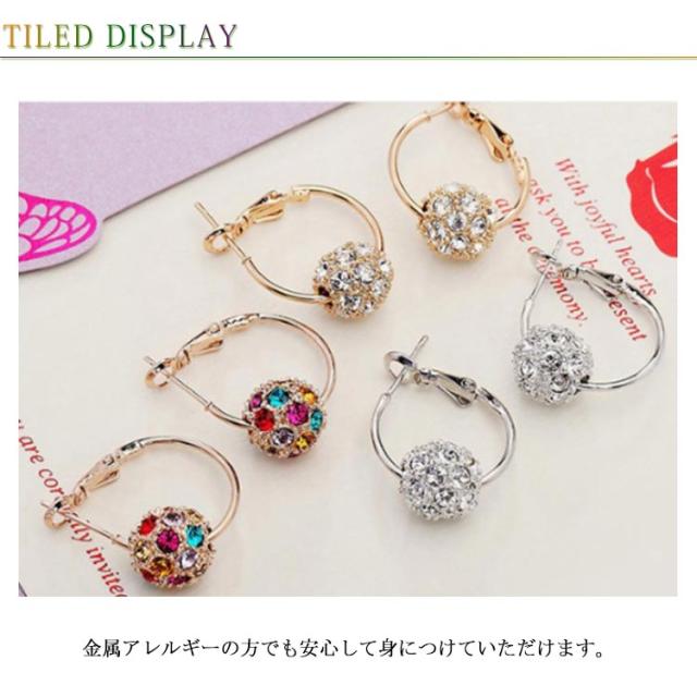 送料無料 彩石 ピアス レディース クリスマス プレゼント ギフト ミラーボール フープ 揺れる 大粒 ビジュー ピアス 大きめ