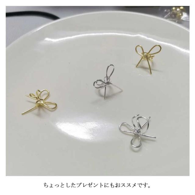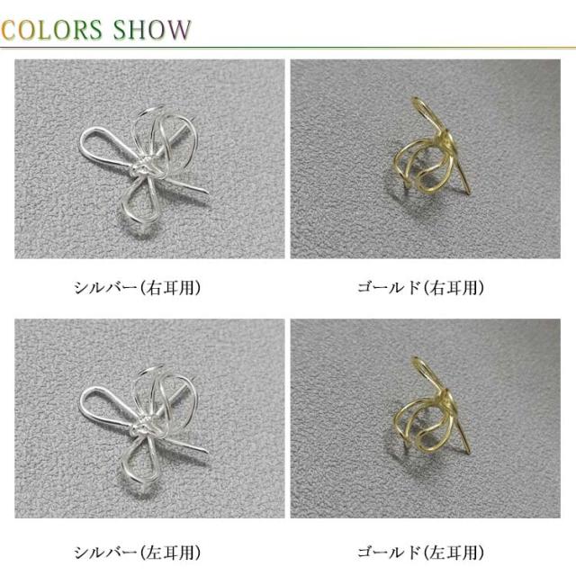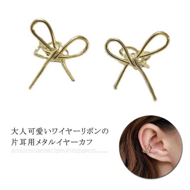 イヤーカフ レディース 送料無料 イヤーカフス イヤカフ 片耳用 メタル ワイヤーリボン 結び目 大人 上品 エレガント 華奢 シンプル フェミニン ゴールド シルバー