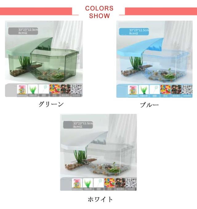 | カメが逃げるのを防ぐ!カメの水槽!飼育ケース。 飼育用の水槽はプラスチック製で、安全で無毒です。 軽量で持ち運びに便利。 底には滑り止め! 半透明で、美しく実用的なタンクの光景をより楽しむことができます。 | |
