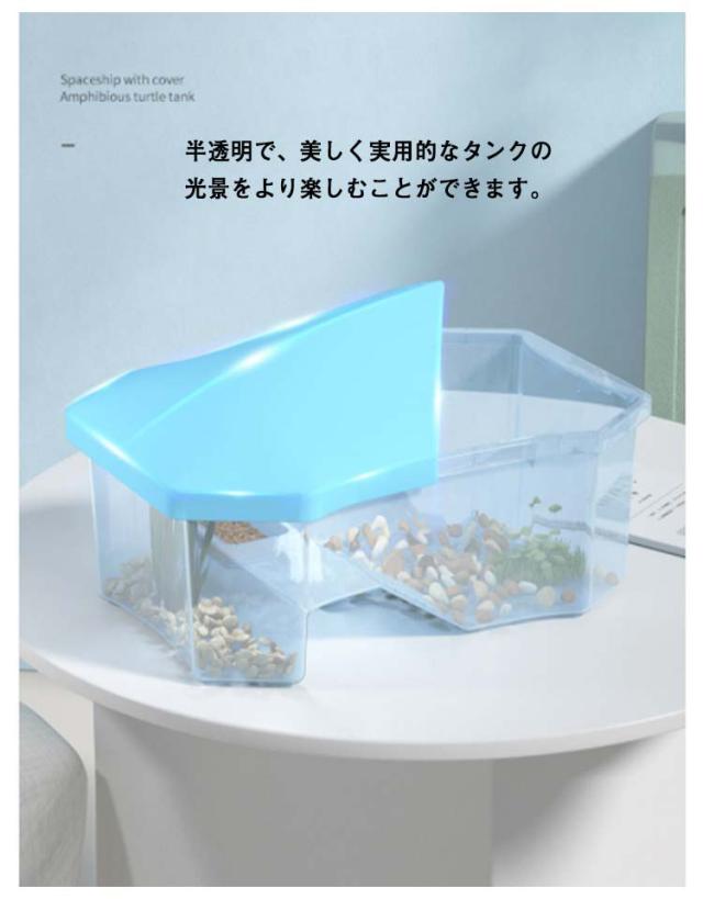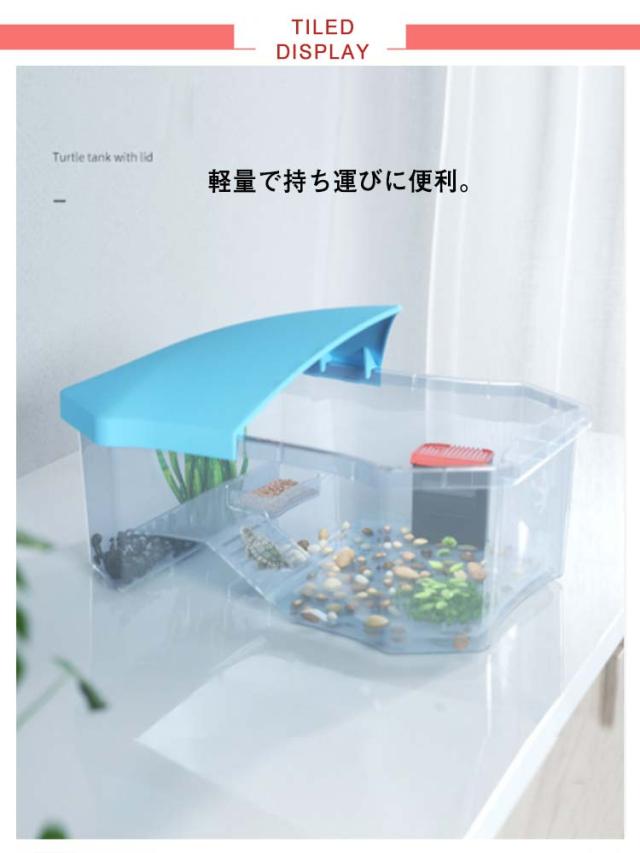 亀の水槽 蓋付き 33*23*12.5cm 両生類 カメの楽園 飼育ケース ボックス 日向ぼっこ台 観察 排水孔 爬虫類 カメ生息地 大空間 亀の楽園 観察 排水孔 可愛い 階段 エサ皿