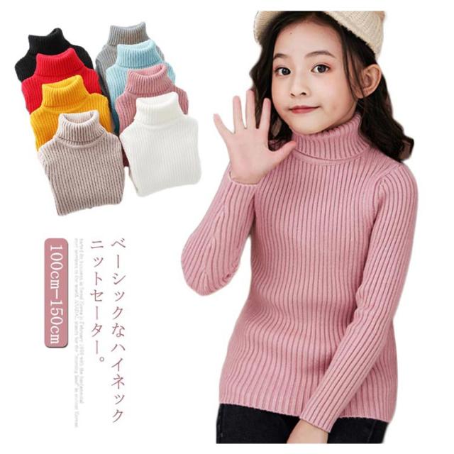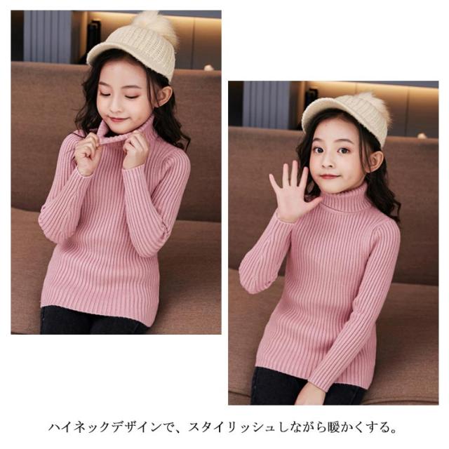 全8色!ニットセーター キッズ ニットトップス セーター 女の子 トップス ニット 長袖 ハイネック タートルネック 子供服 カジュアル 無地 おしゃれ 暖かい 冬 新作