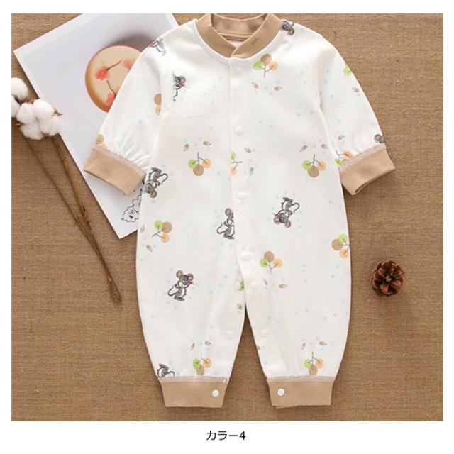 送料無料 キッズ ベビー ルームウェア 部屋着 パジャマ こども 子供服 男の子 女の子 長袖カバーオール 丸ネック スウェット 長袖 動物 59 66 73 80 90