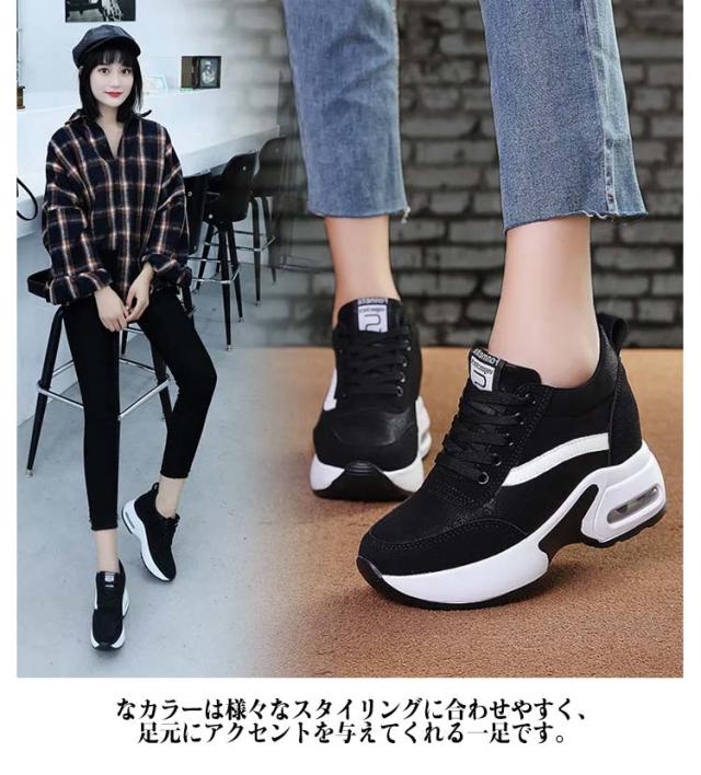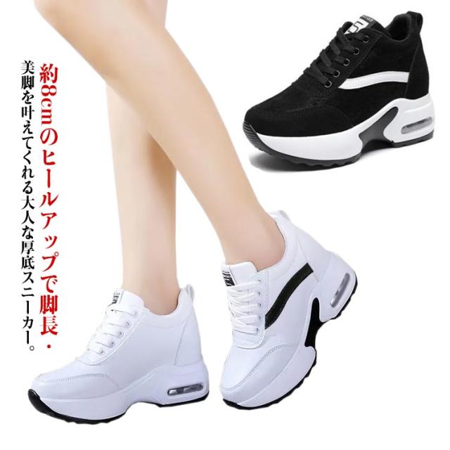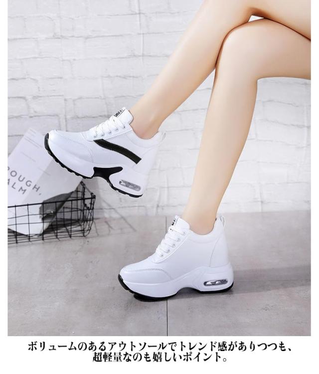 厚底 スニーカー レディース ハイカットスニーカー インヒール 厚底 ダッドスニーカー ダッドシューズ 靴 軽量 歩きやすい 疲れにくい 身長アップ 8cm ヒールアップ 美脚 レースアップ 軽量 甲高 幅広 滑りにくい 痛くない おしゃれ 通気 スタイルアップ ブラック ホワイト