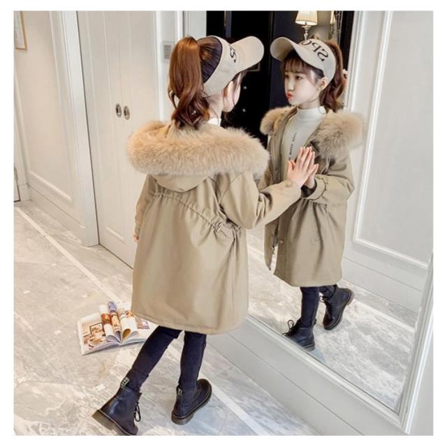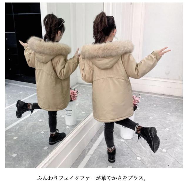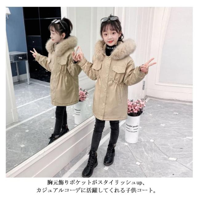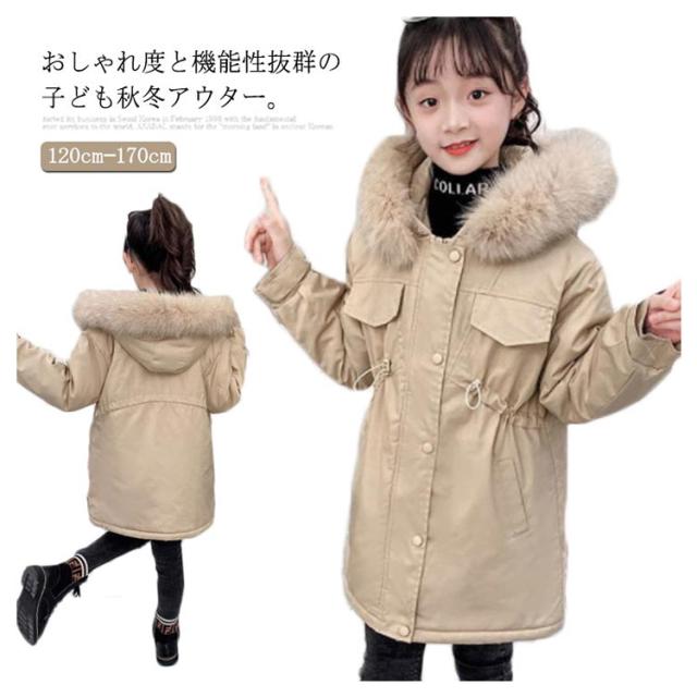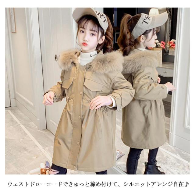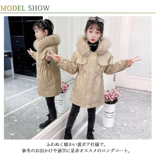 モッズコート 子供服 ジュニア ロングコート フェイクファー フード付き 女の子 キッズ トレンチコート 裏ボア ふわふわ 120 130 140 150 160 170 防寒 秋冬 通学 中学生 小学生