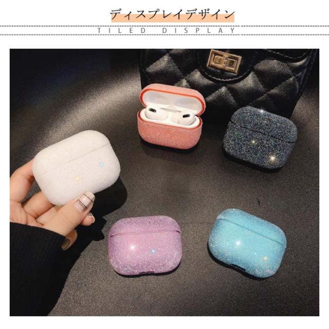 送料無料 ハードケース エアーポッズ ケース カバー キラキラ AirPods ケース カバー かわいい ストラップ付き キラキラ グリッター AirPodsPro AirPods1 AirPods2 アップル イヤホン 収納ケース 保護カバー イヤホンケース 保護収納