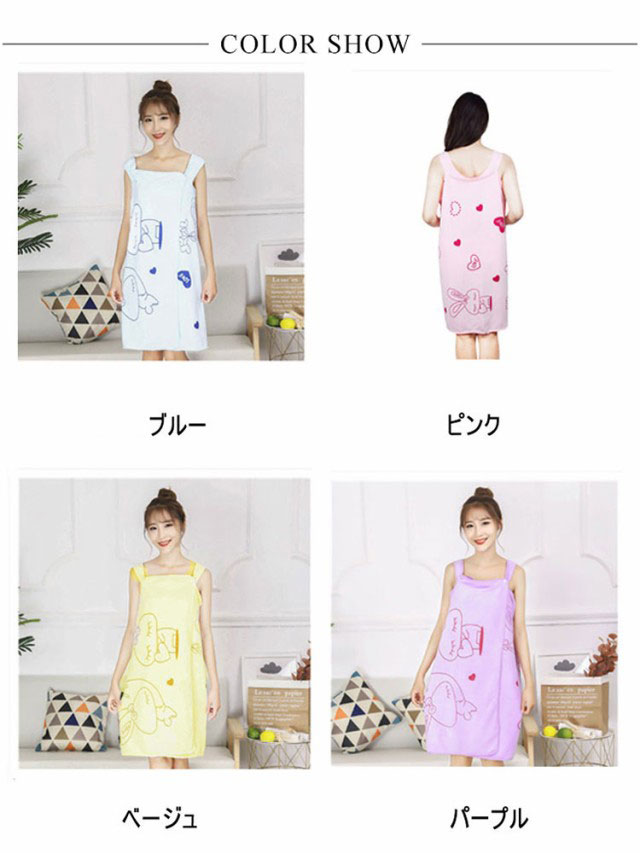 | お風呂上りにサッと着られるワンピース風バスローブ。 ズレ落ちない着れるバスタオルです。 この着れるバスタオルはお風呂あがりにサッと着ることができ、とっても便利なんです♪ マイクロファイバー素材吸水・速乾性抜群!すぐに乾く! 穴に腕を通すだけでワンピーススタイルのバスタオルでルームウエアとしても大活躍。 お風呂上がり、子供を先に着替えさせる際に! 海やプールなど水着の上から着ても移動もできる! 大浴場の脱衣所でドライヤーをかける際に! どんなシーンでも使える万能アイテム。 | |