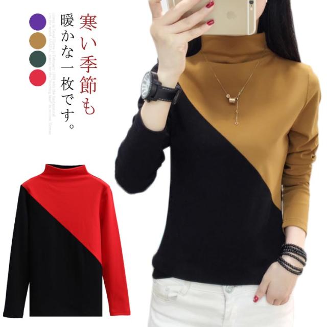 長袖トップス タートル ハイネック 長袖 Tシャツ ロンT カットソー インナー プルオーバー レディース 秋冬定番 タイト ストレッチ 可愛い 新作