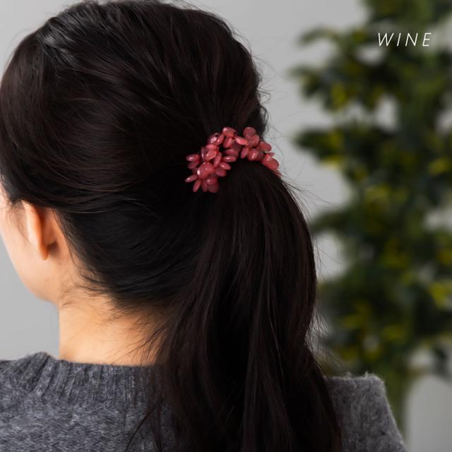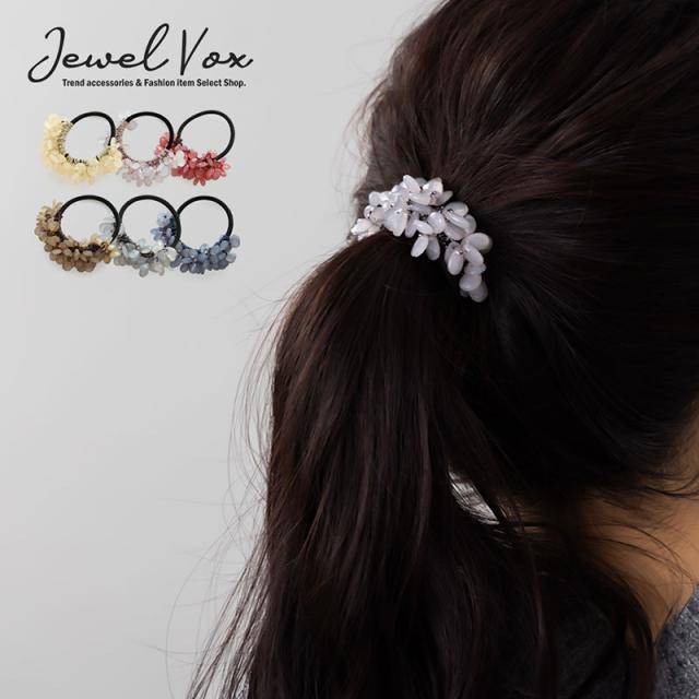 ヘアゴム ヘアアクセサリー 大人っぽい ドロップ ビーズ じゃらじゃら まとめ髪 プラスチック 黒ゴム シンプル くすみカラー レディース かんたん こなれ オフィス 通勤 パーティー 女性