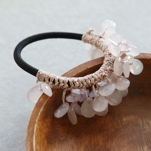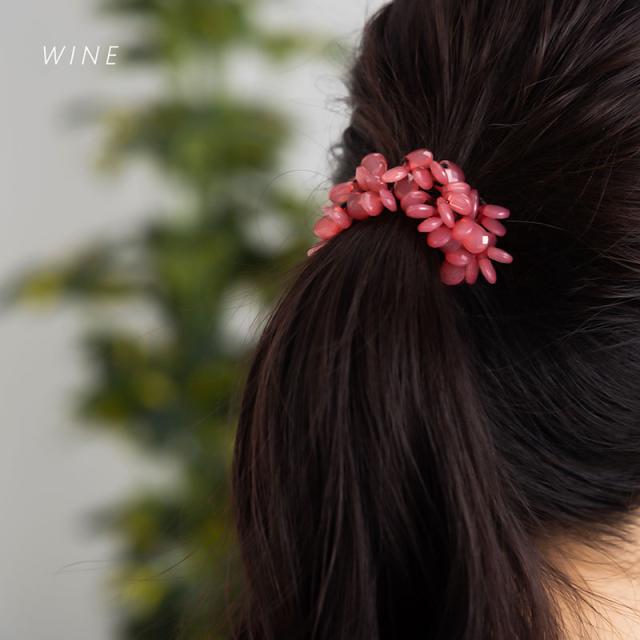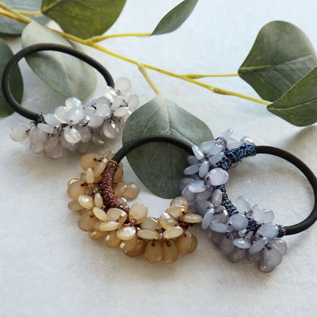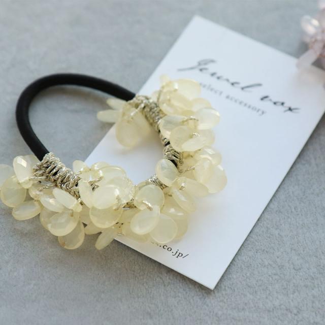 多面カット加工されたドロップビーズを合わせたヘアゴムです。