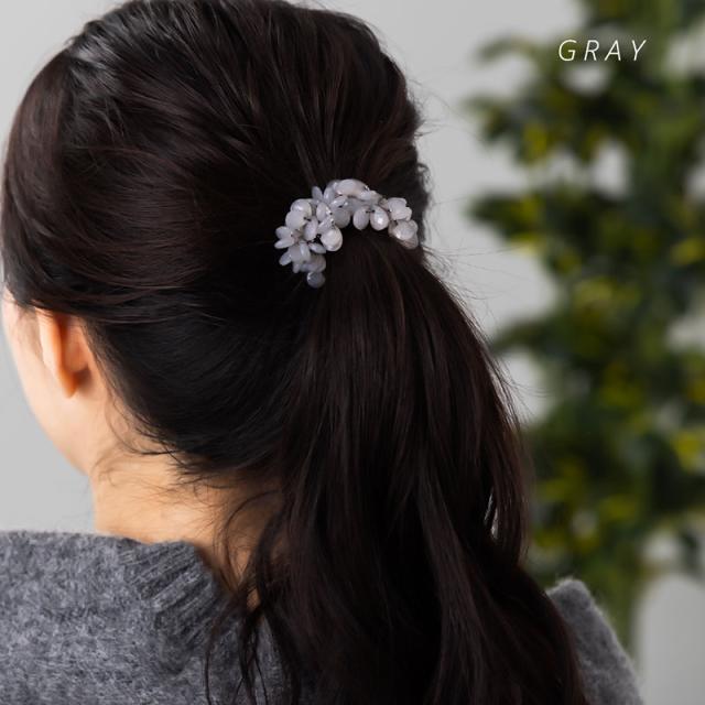 | 多面カット加工されたドロップビーズを合わせたヘアゴムです。 じゃらじゃらと合わさったモチーフが程よい華やかさもあり、大人っぽい上品な印象に。 サッとまとめるだけでヘアスタイルをおしゃれに仕上げてくれます。 | |