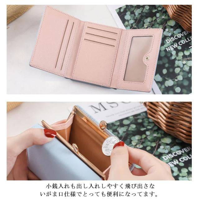 送料無料 がま口 財布 レディース ミニ財布 三つ折り財布 かぶせ 使いやすい がま口 ミニ コンパクト 小銭入れ おしゃれ 可愛い 小さい 大容量 カード 小銭 出しやすい ウォレット フェイクレザー 女性 母の日