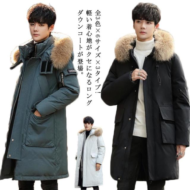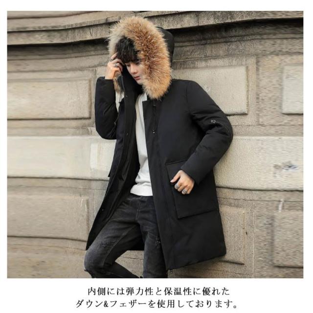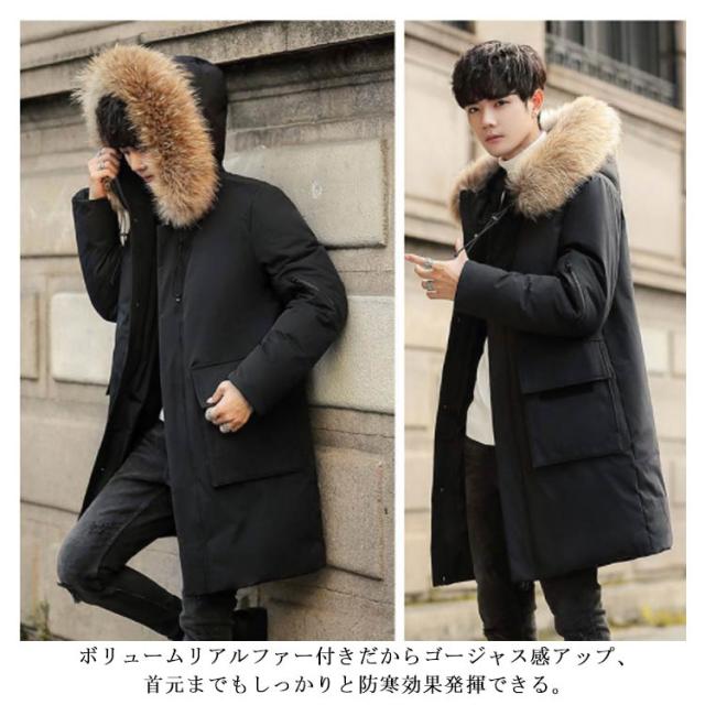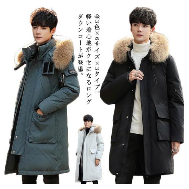 ダウンコート メンズ ダウン コート ロング リアルファー ロングコート ボリュームダウン メンズコート ダウン アウター コート フード付き 厚手 防寒 防風 メンズファッション 秋冬 冬物 冬服