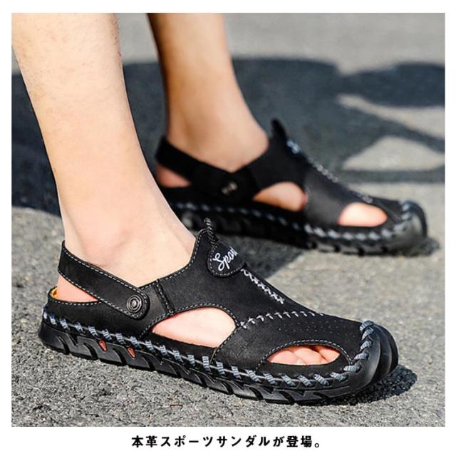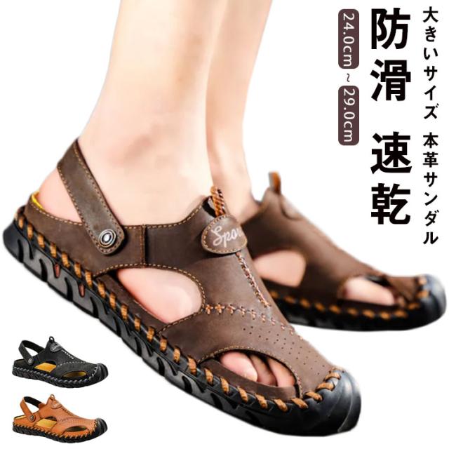 夏用 サンダル 本革 サンダル メンズ ビーチサンダル スポーツサンダル メンズ 大きいサイズ スポーツさんだる つま先保護 歩きやすい アウトドアサンダル 本革 レザーサンダル 防滑 速乾 通気性 メンズ