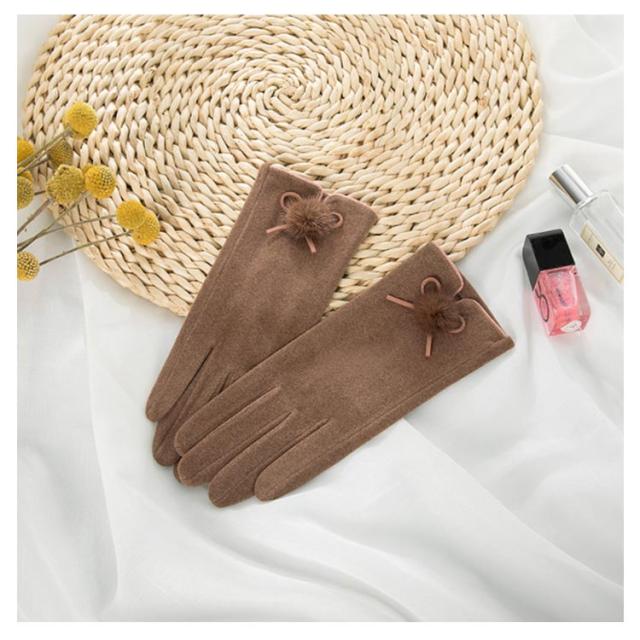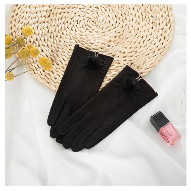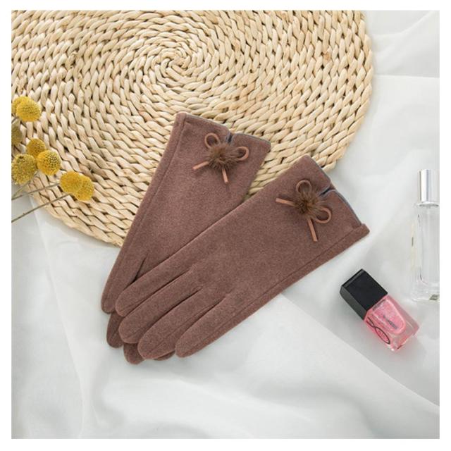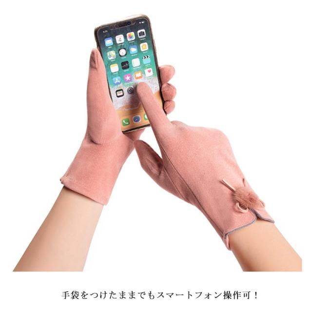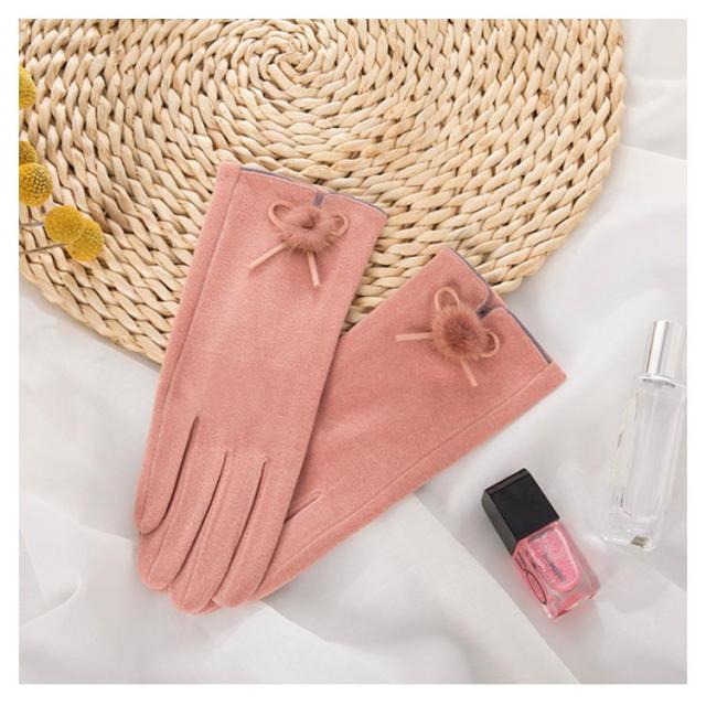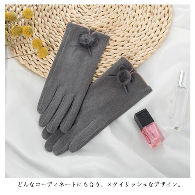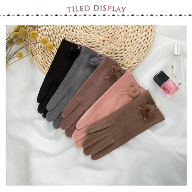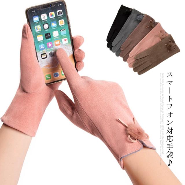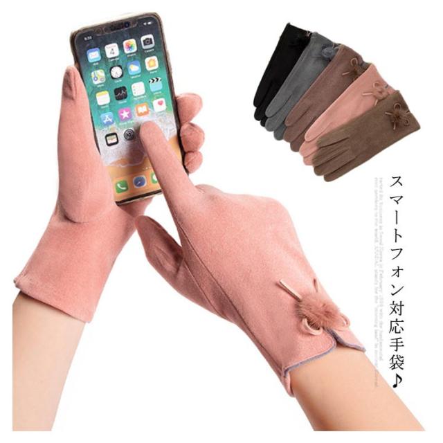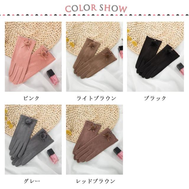 送料無料 全5色!手袋 スマホ手袋 スマートフォン対応手袋 自転車 毛玉 リボン手袋 リボン 手袋 五本指 レディース てぶくろ 通勤 通学 暖かい 冬 防寒 防風
