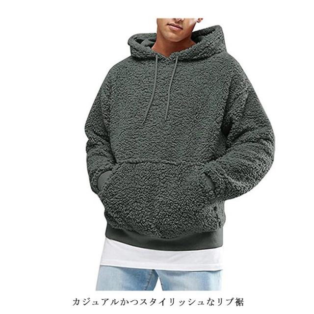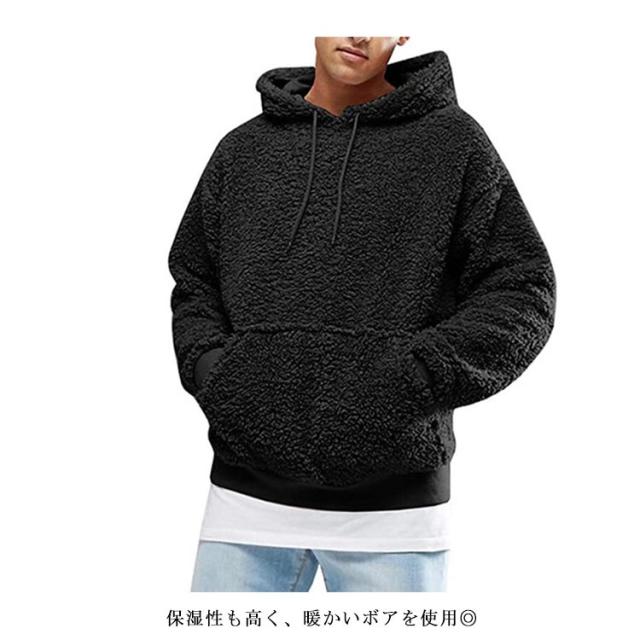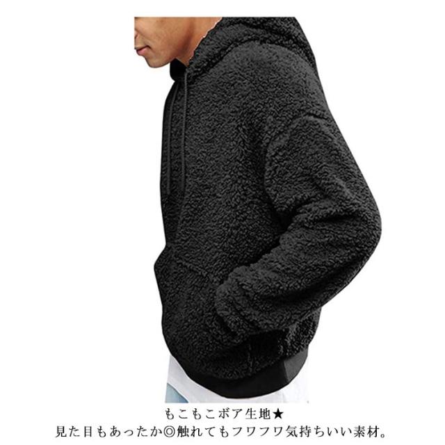 長袖 ボア パーカー パーカ フリース プルオーバーパーカー メンズ フード付き ポーラーフリース プルオーバーパーカ 秋 冬