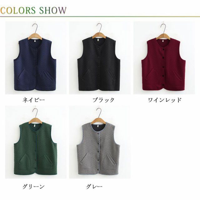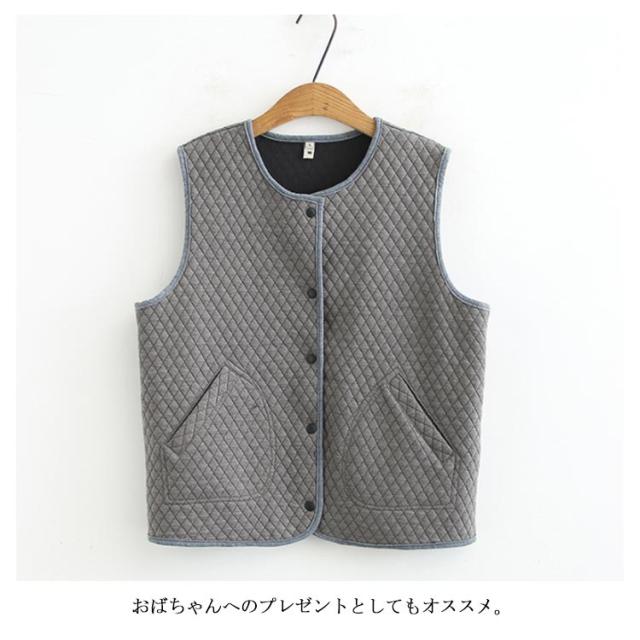 | 軽く羽織れるキルトニットベスト。 中綿入りのキルティングベスト、優しいカジュアルテイスト満載。 軽くてあったか羽織り心地、季節の変わり目から真冬までロングシーズン大活躍するから重宝します。 ノーカラーシンプルなデザインなので、スタイリングしやすく、コーディネート幅広がります。 おばちゃんへのプレゼントとしてもオススメ。 | |