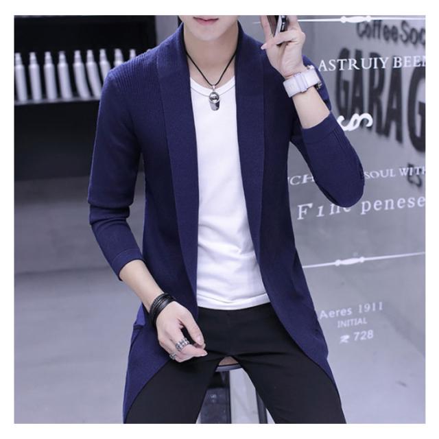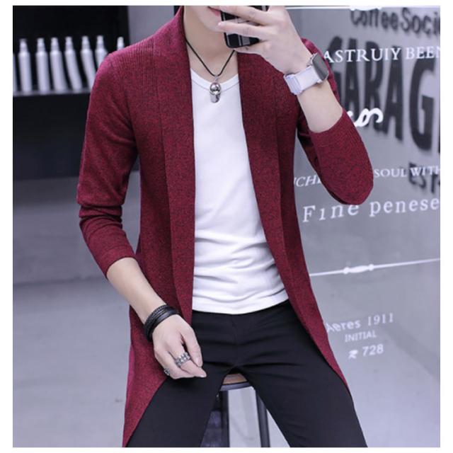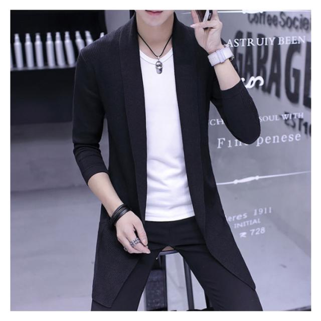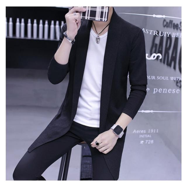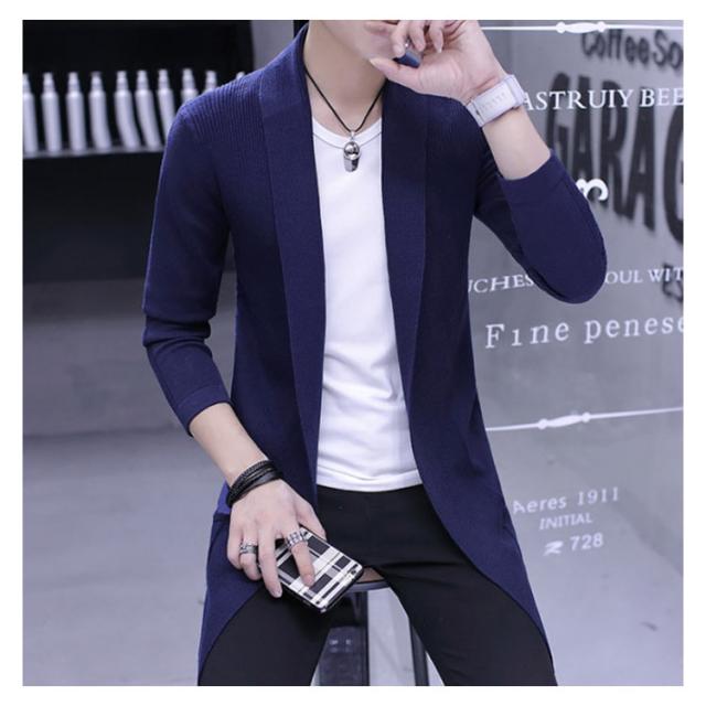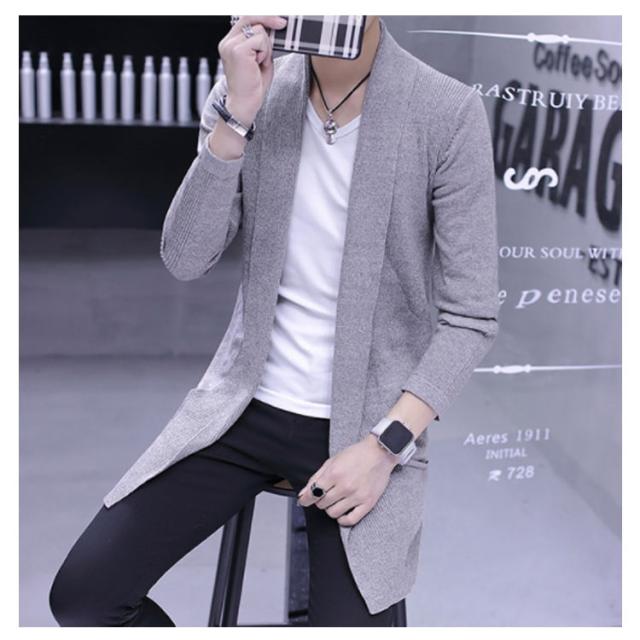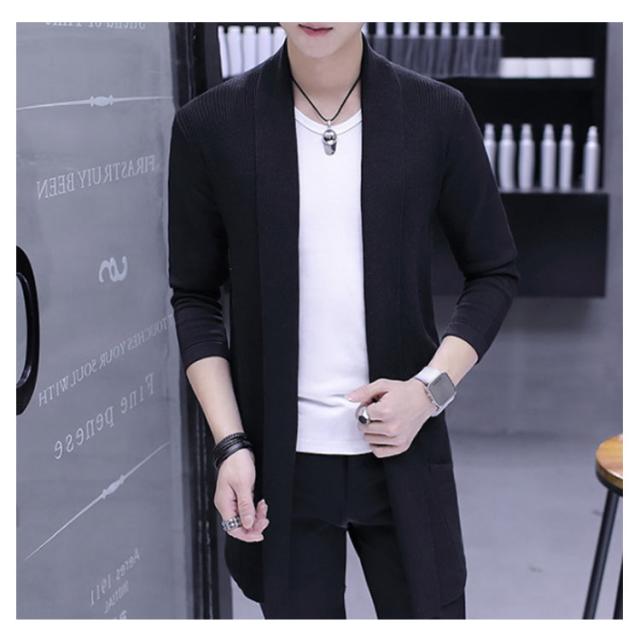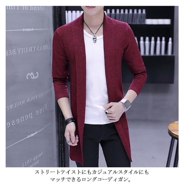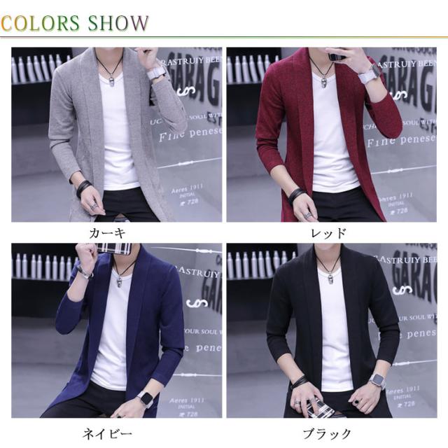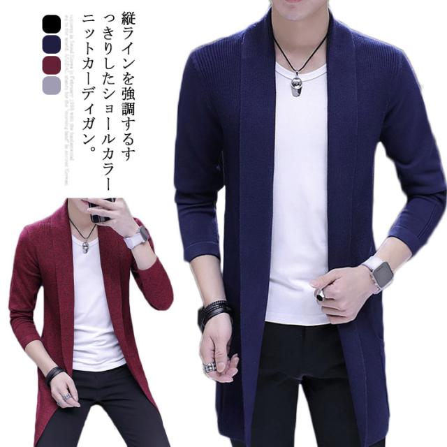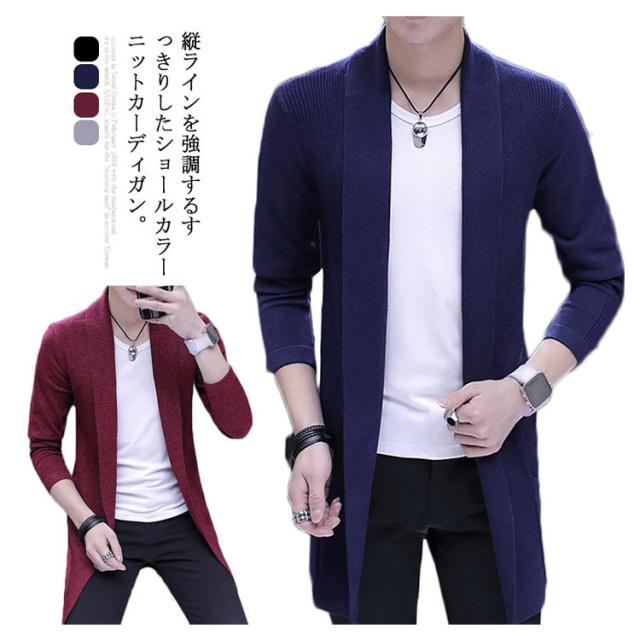 ロングカーディガ メンズ ニットカーディガン ショールカラー ロング丈 羽織り ライトアウター ニット トップス コーディガン 春秋 冬 ボタンなし