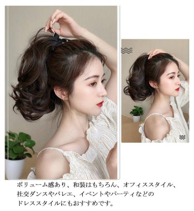 | 超簡単に付ける紐タイプのウィッグポニーテール! 控えめなナチュラルウェイブで一気におしゃれな雰囲気に、カールがフェミニンな女性らしさを演出。 内側ネットで地毛の毛先を安心収納、抗菌も抜群! ルーズなシルエットが普段使い用にもお出かけ用にも使えます。 ボリューム感あり、和装はもちろん、オフィススタイル、社交ダンスやバレエ、イベントやパーティなどのドレススタイルにもおすすめです。 | |