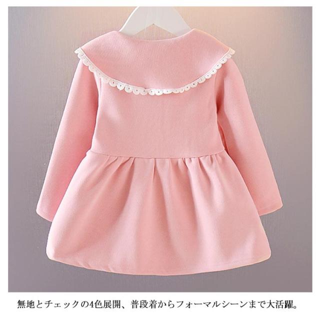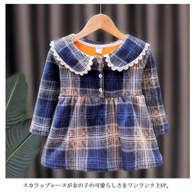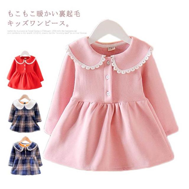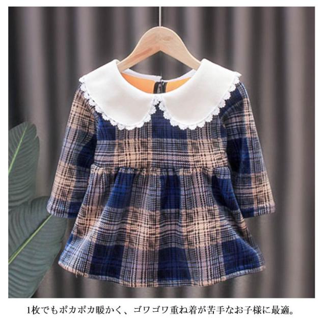 ベビー服 長袖 ワンピース 裏起毛 あったか 子供服 キッズ 女の子 丸襟 90 100 110 120 130 フォーマル チェック柄 秋冬 通学通園