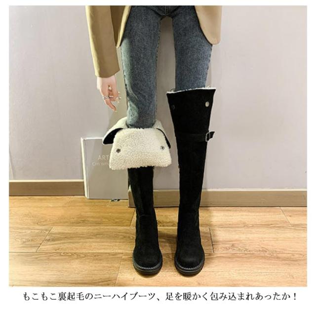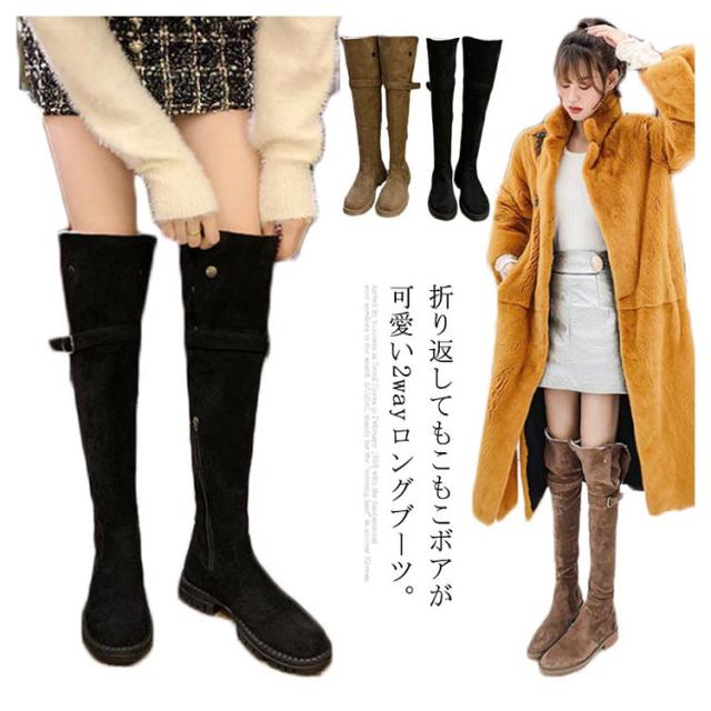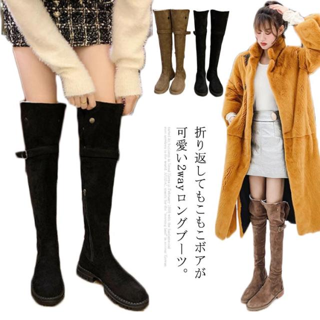 ロングブーツ ニーハイブーツ ムートンブーツ レディース もこもこ ボア 可愛い 2WAY 折り返し 裏起毛 暖かい フラットシューズ スノーブーツ