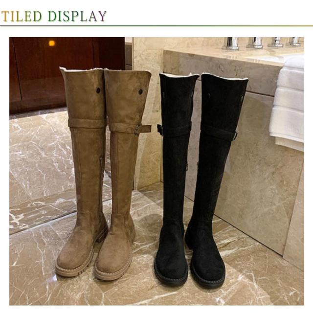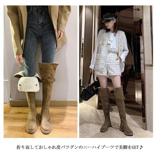 | 折り返してもこもこボアが可愛い2wayロングブーツ。 折り返しておしゃれ度バツグンのニーハイブーツで美脚をGET♪ もこもこ裏起毛のニーハイブーツ、足を暖かく包み込まれあったか! 歩きやすいぺたんこタイプ、長く履いても疲れない。 | |
