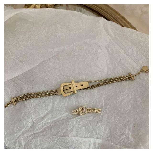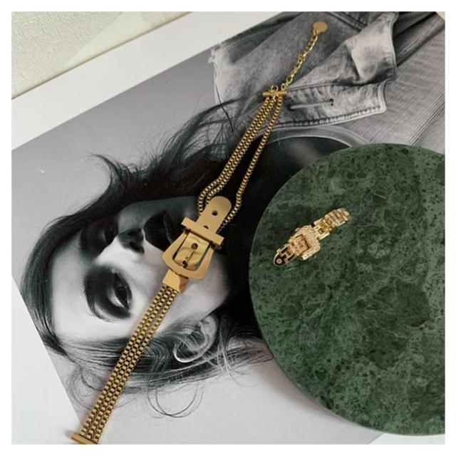 | 商品名:ブレスレット サイズ:ブレスレット:15cm+アジャスター4cm/指輪:調節可能 材質:ブレスレット:ステンレス / 指輪:合金 特徴:おしゃれな時計ベルトタイプのブレスレットのご紹介です! シンプルなコーデにプラスするだけでオシャレな印象に! お揃いでのご使用や、大切な方へのギフトにもオススメです。 | |