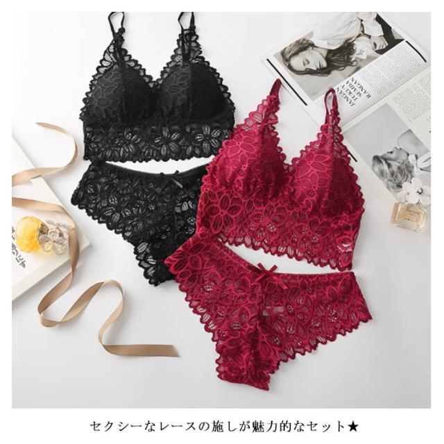 | セクシーなレースの施しが魅力的なセット★ 豊富な5カラーをご用意しております★ 可愛いレースがポイントのセクシーな女性下着です。 | |