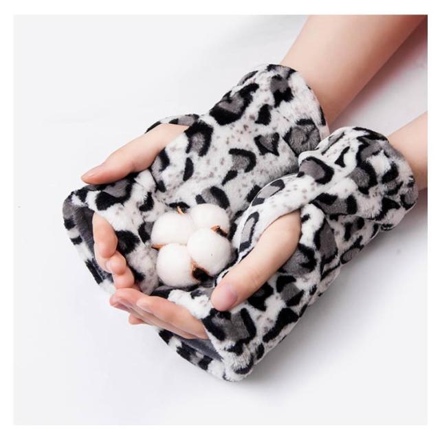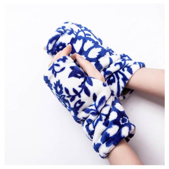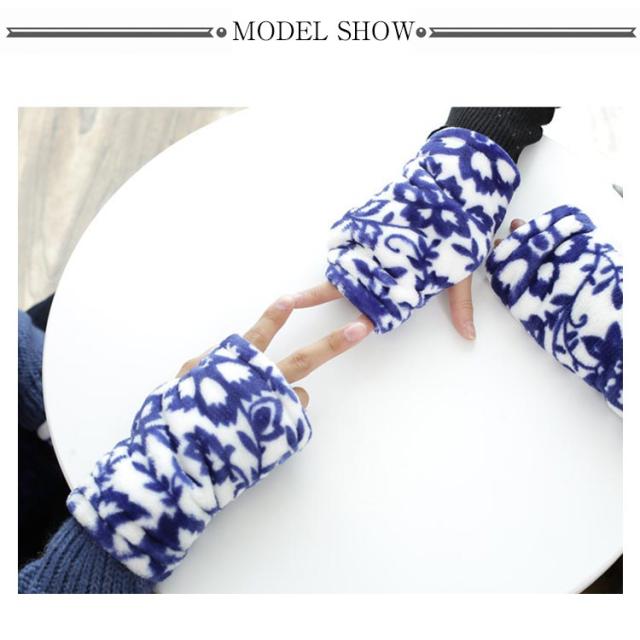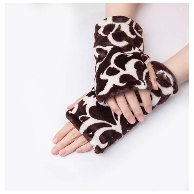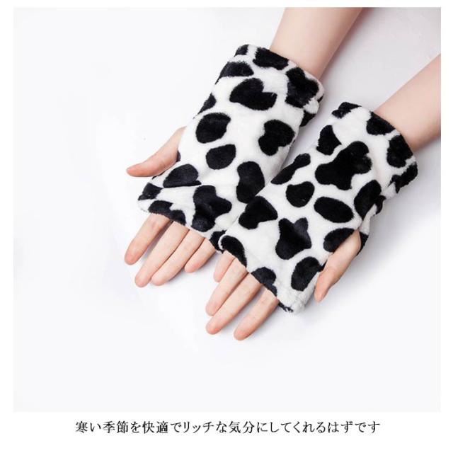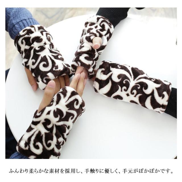 ハンドウォーマー 手袋 レディース グローブ デスクワーク ボア付き モコモコ 指なし スマホ対応 柄物 お洒落 秋冬物 通学 通勤 防寒対策 冷え対策