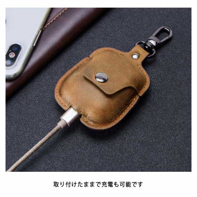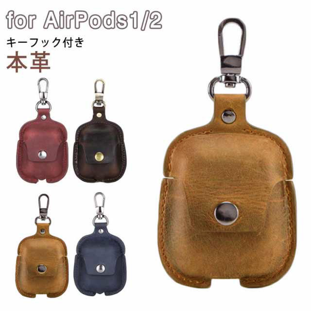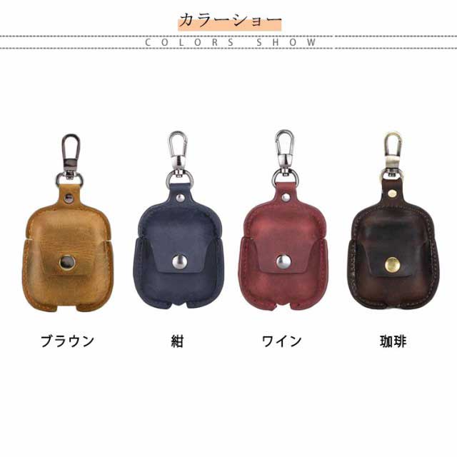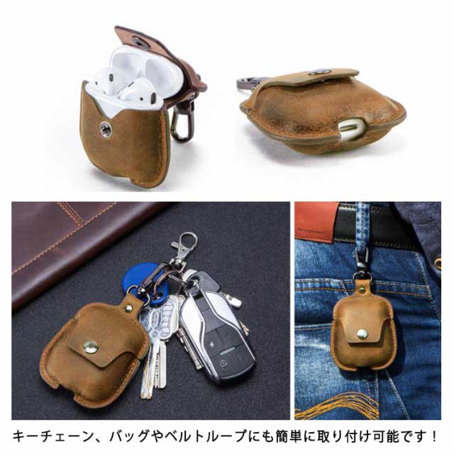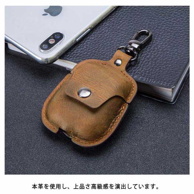 送料無料 AirPods ケース カバー 本革 全面保護 耐衝撃 紛失防止 落下防止 レザー イヤホン 収納ケース キーフック付き カラビナ付き AirPods1 AirPods2 アップル イヤホン 収納ケース 牛革 エアーポッズ カバー 保護カバー イヤホンケース 保護収納