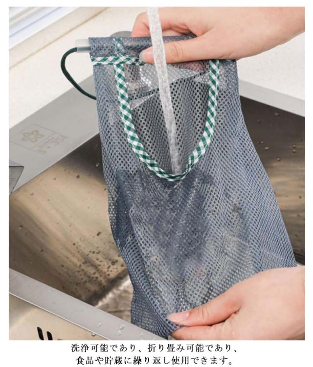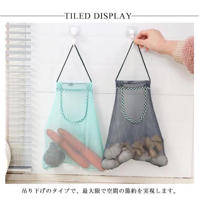 メッシュバッグ ネットバッグ 野菜保存 果物収納 壁掛け 買い物 エコバッグ キッチン用 手揚げ 通気性 大容量 小物収納 多機能 省スペース 水洗い
