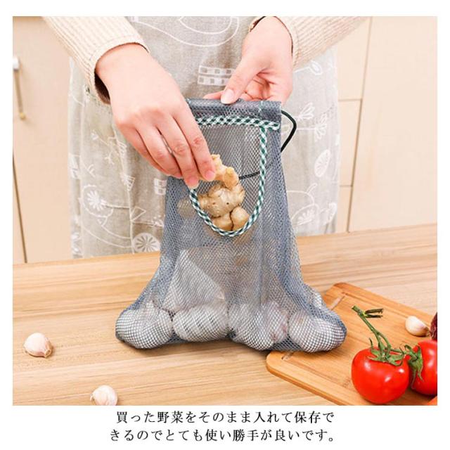 | 果物や野菜の保存時間を延長するメッシュバッグ。 買った野菜をそのまま入れて保存できるのでとても使い勝手が良いです。 吊り下げのタイプで、最大限で空間の節約を実現します。 洗浄可能であり、折り畳み可能であり、食品や貯蔵に繰り返し使用できます。 キッチン収納だけでなく、バス用品小物と化粧品などにも対応可能です。 | |