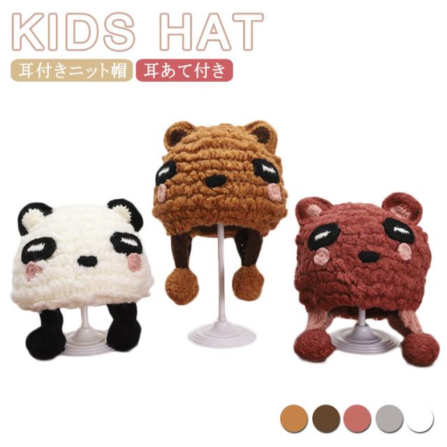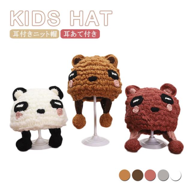 パンダさん ニット帽子 耳あて付き 子供 ニット帽 クマさん クマ耳 赤ちゃん 帽子 防寒 帽子 女の子 男の子 ベビー 帽子 ニット 帽子 ニット帽子 子供 キッズ ニットキャップ キッズ帽子 キャップ 冬物 出産祝い プレゼント 誕生日 幼稚園 帽子 お散歩 送料無料