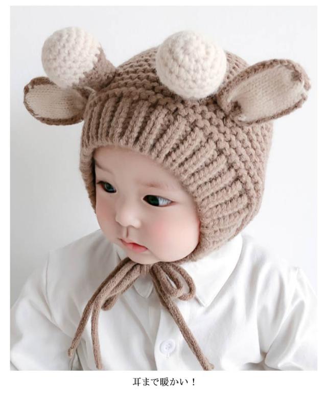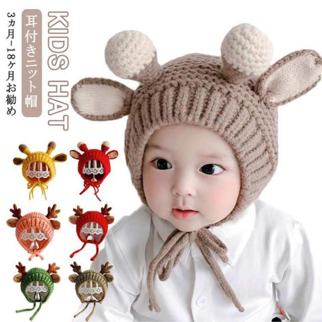 ベビー 赤ちゃん ニットキャップ トナカイ耳付き ニット 帽子 子供 シカ耳付き ニット帽子 ニット帽 キッズ 帽子 キッズ帽子 キャップ 女の子 男の子 帽子 ニット帽 帽子 防寒 冬物 プレゼント クリスマス 誕生日 幼稚園 帽子 お散歩 送料無料