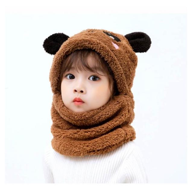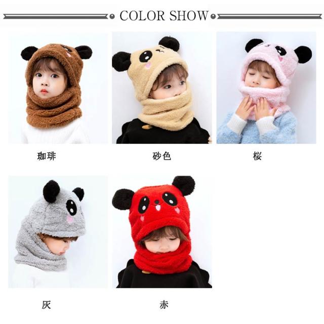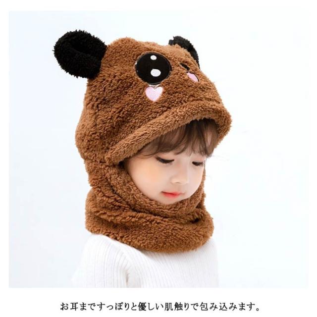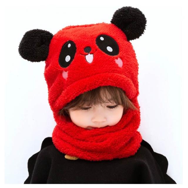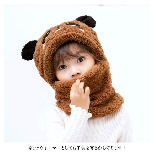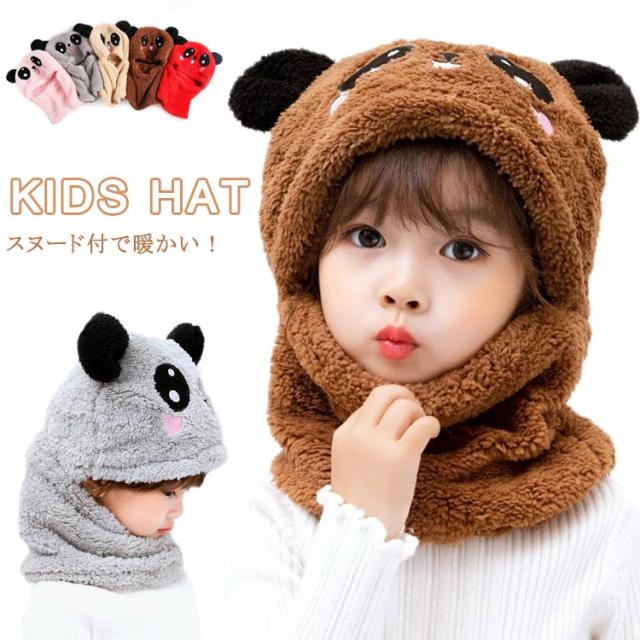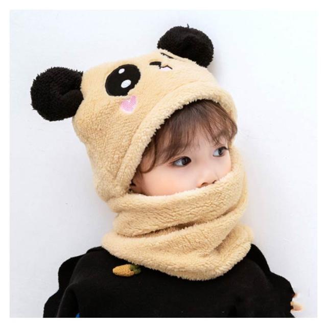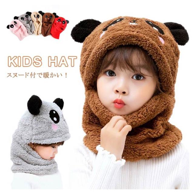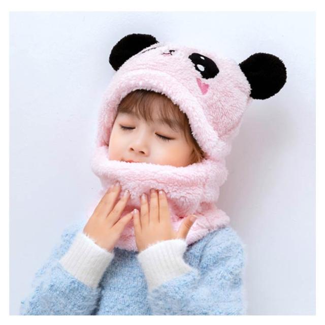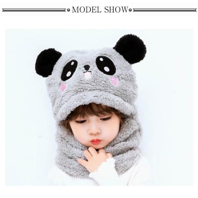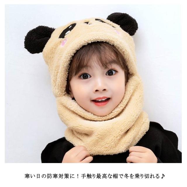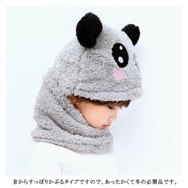 スヌード付き 帽子 ボア キャップ 帽子 ベビー キッズ 赤ちゃん パンダ 子供 ボア 帽子 キャップ 帽子 ネックウォーマー マフラー ボア 防寒 冬物 ふわふわ もこもこ プレゼント クリスマス 誕生日 幼稚園 お散歩 送料無料