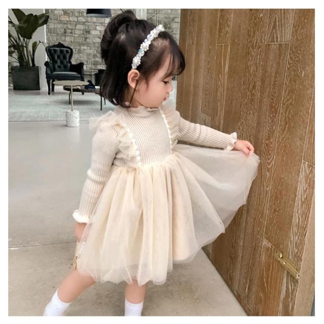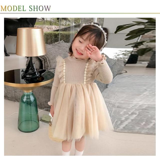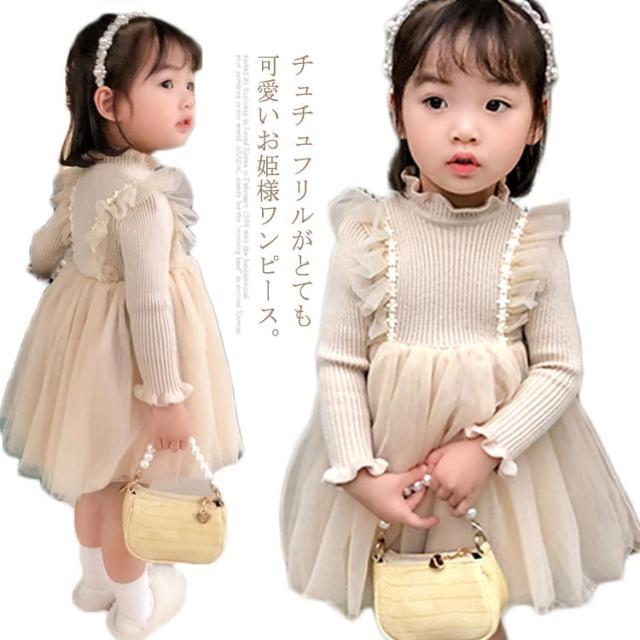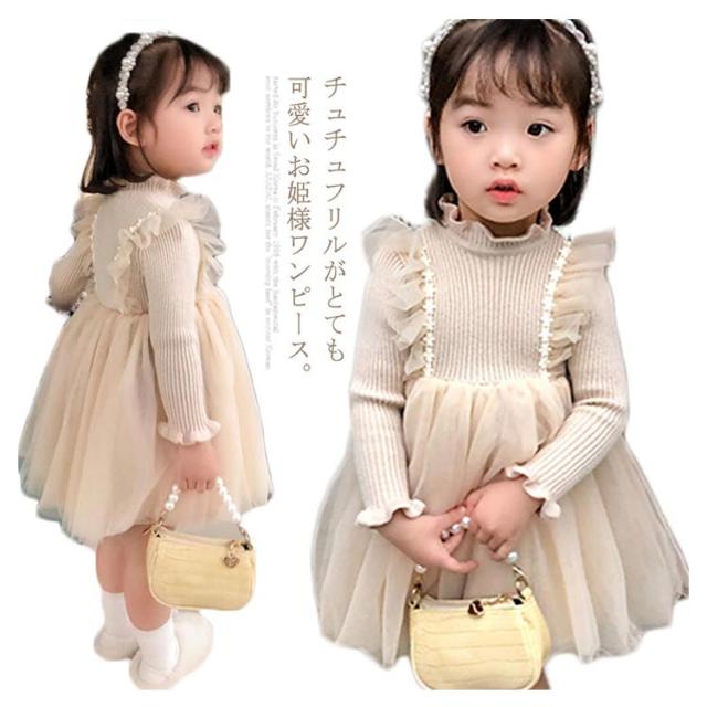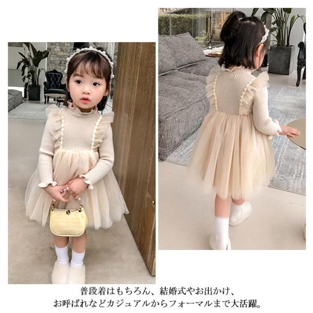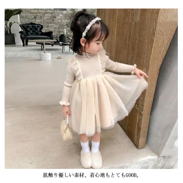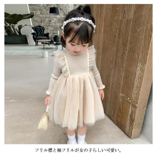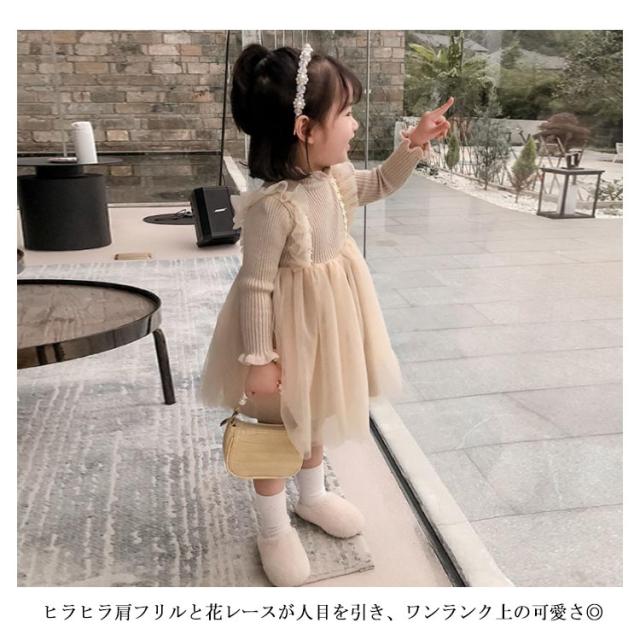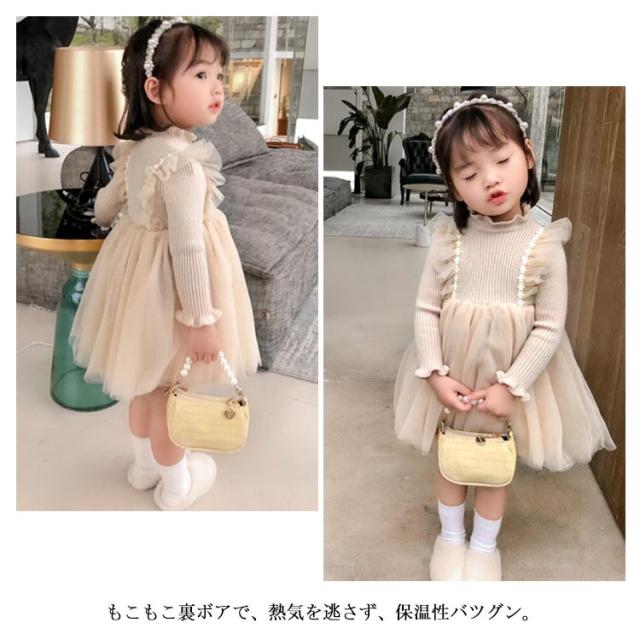 キッズ ワンピース 裏ボア 裏起毛 暖かい 長袖 ニットワンピース チュチュ レース フレア フリル フォーマル ドレス 普段着 可愛い 90 100 110 120 130