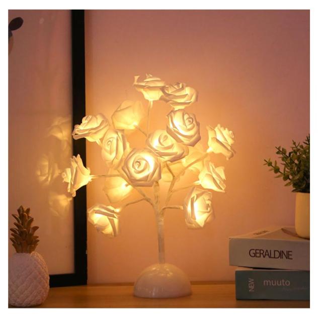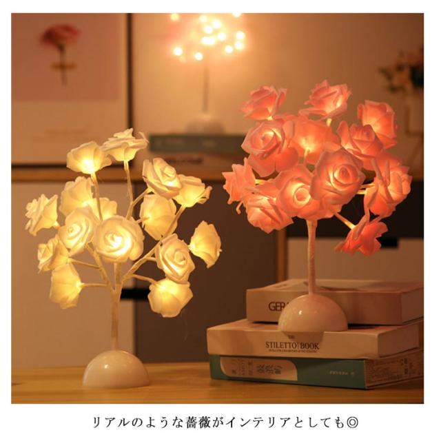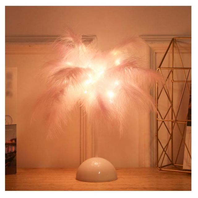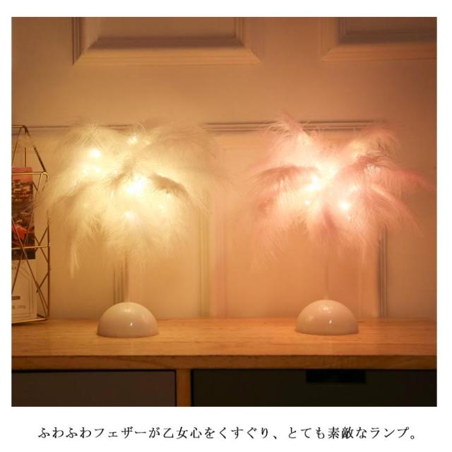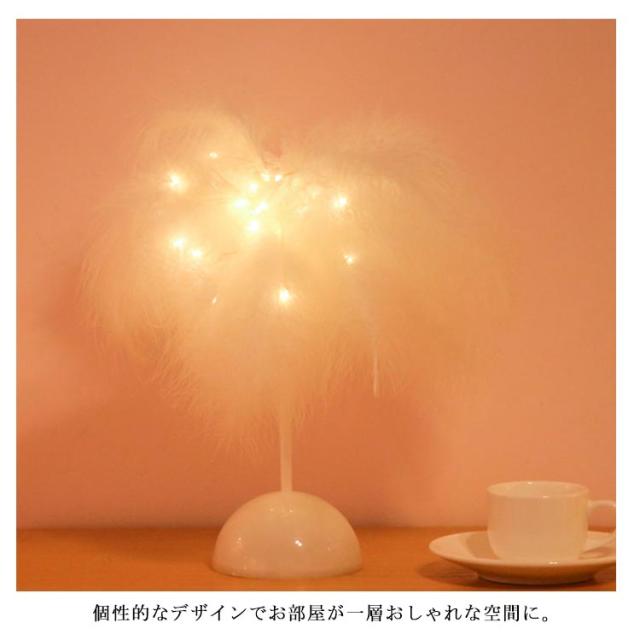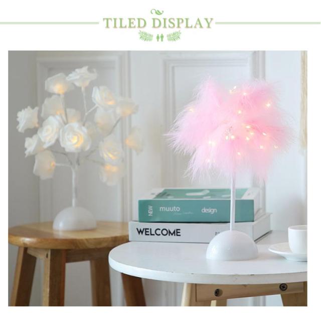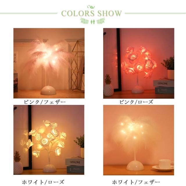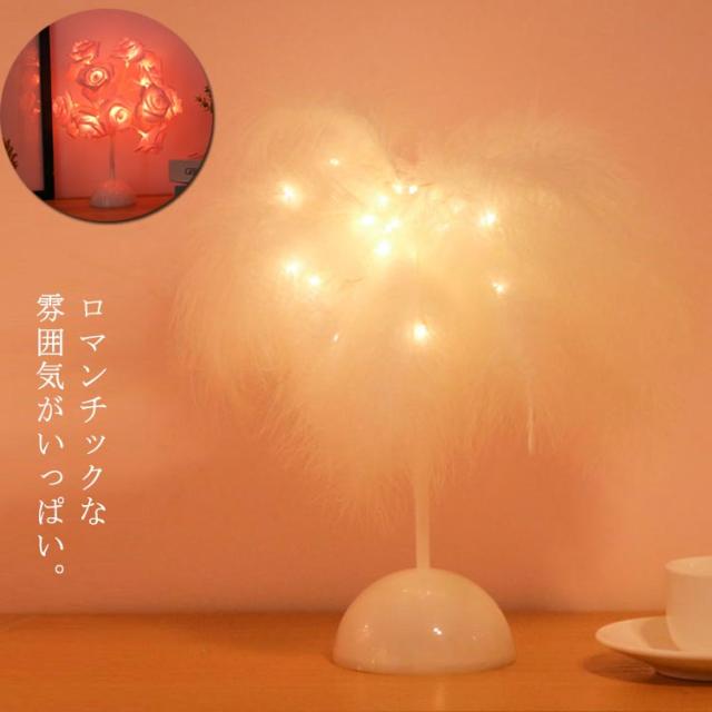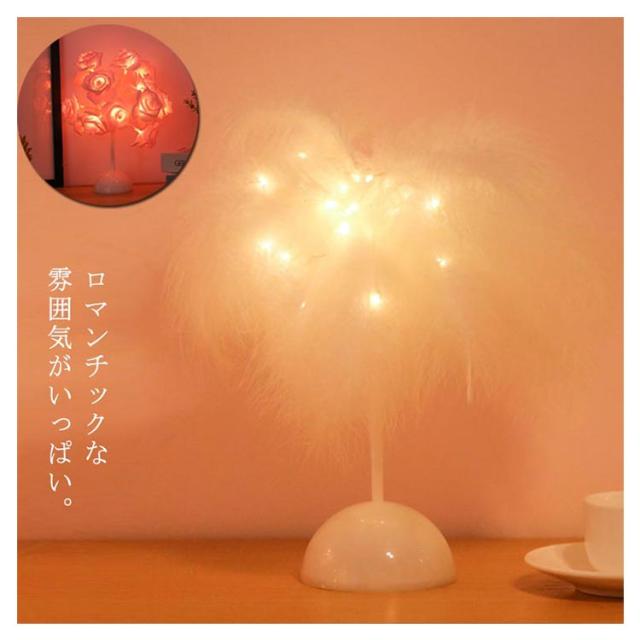 スタンドライト 卓上ライト 羽毛 フェザー ナイトライト スタンド照明 LED ライト 電池式 ローズ花 インテリアライト デスクライト 個性的 北欧 薔薇 誕生日 プレゼント