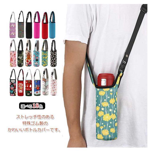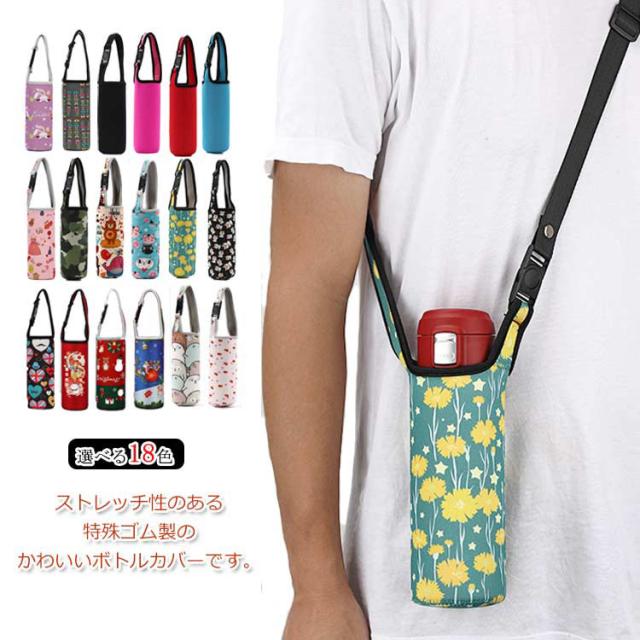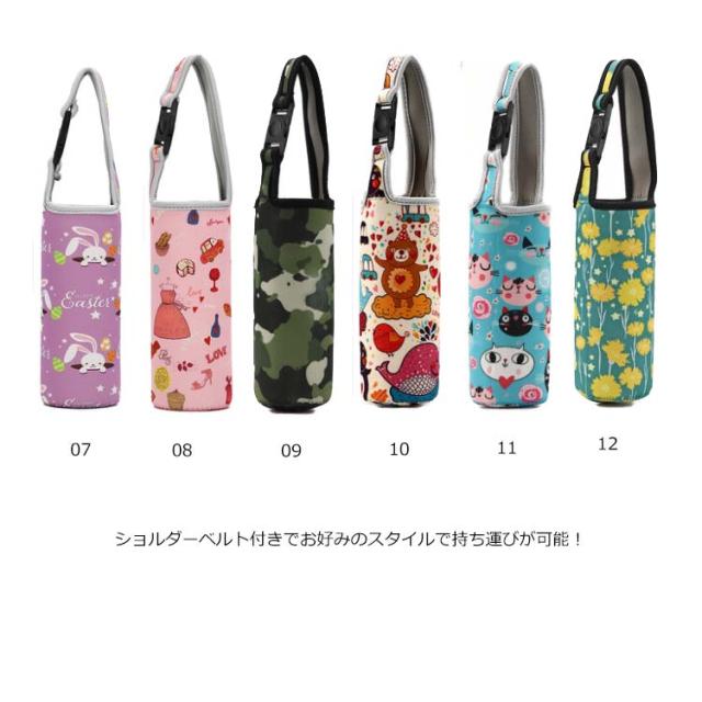 ボトルカバー 傷防止 斜め掛け 水筒ケース ペットボトルカバー ショルダー ボトルホルダー こども かわいい おしゃれ キッズ 子供 大人 女性 軽量 クッション性 アニマル柄 ネコ 花柄 送料無料