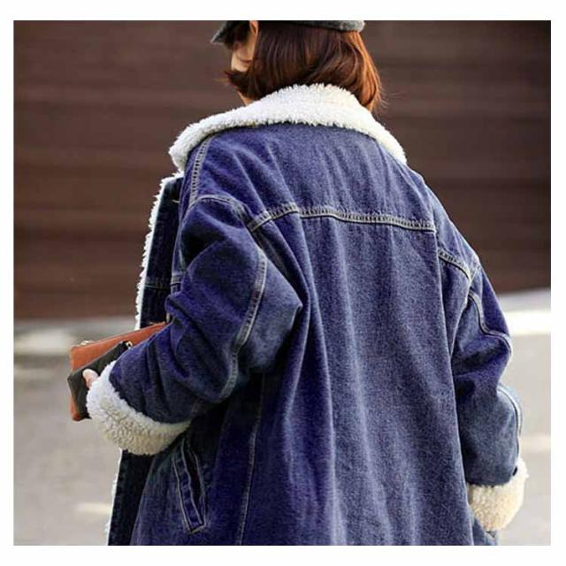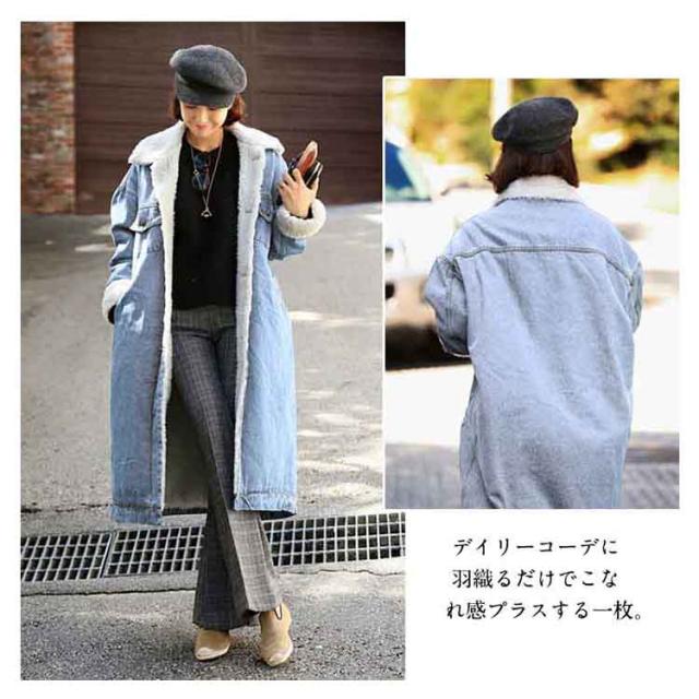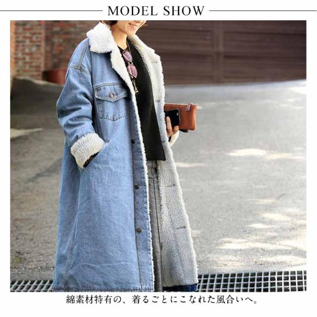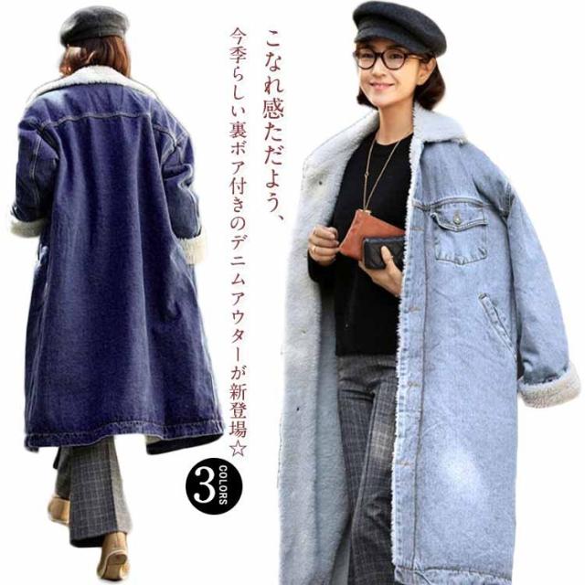 裏起毛デニムコート ロング丈 デニム アウター チェスターコート ゆったり 体型カバー 冬物