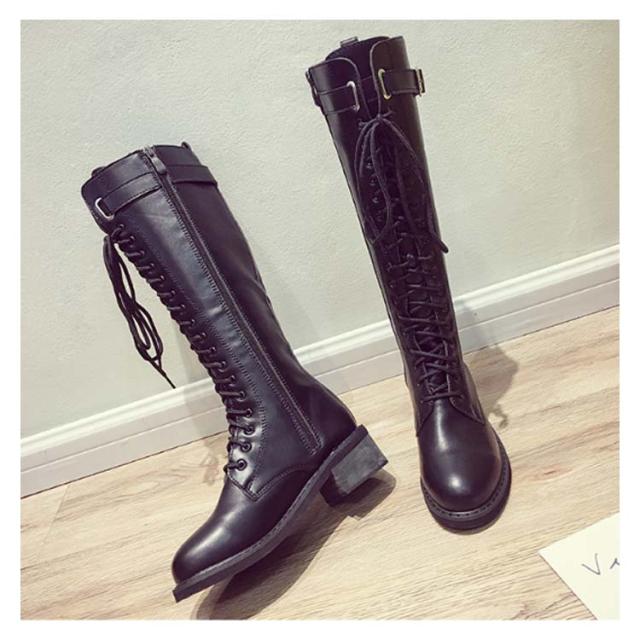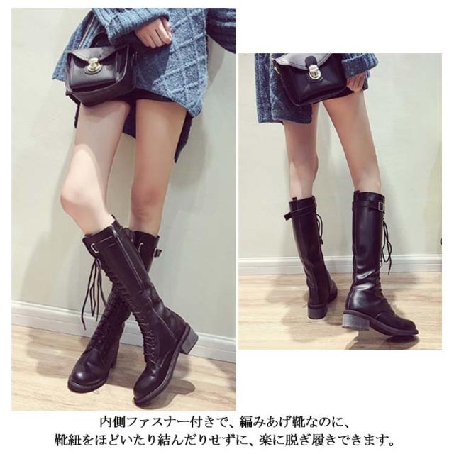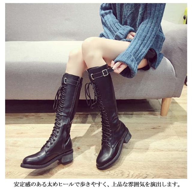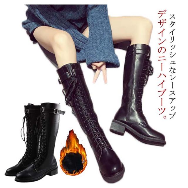 レースアップブーツ ロングブーツ ニーハイブーツ レース 編み上げ