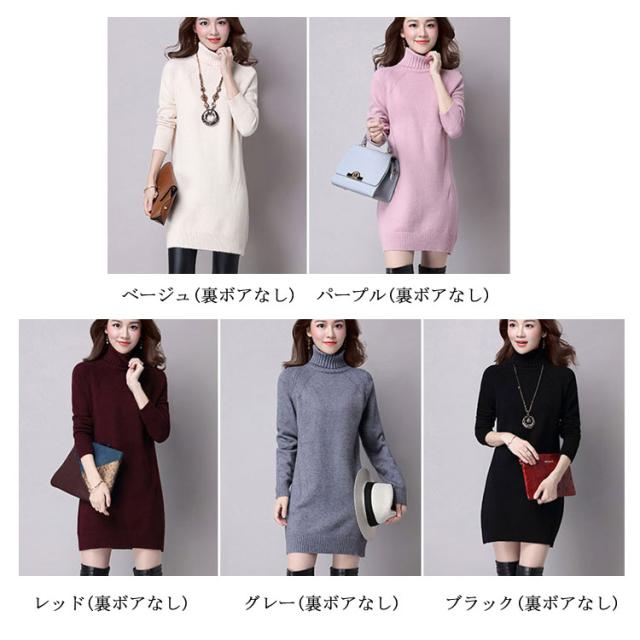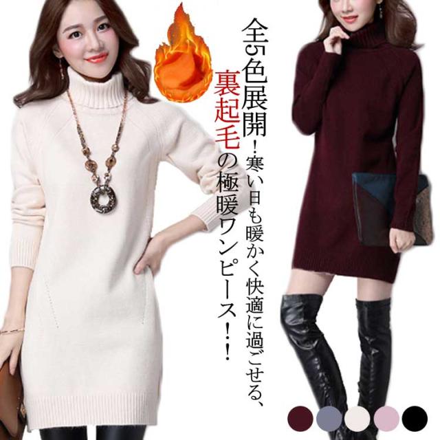 ニット ワンピース タートルネック 膝上丈 ニットワンピ 大きサイズ 保温