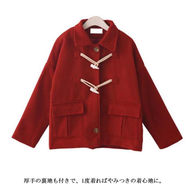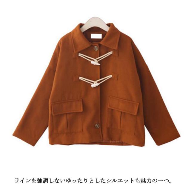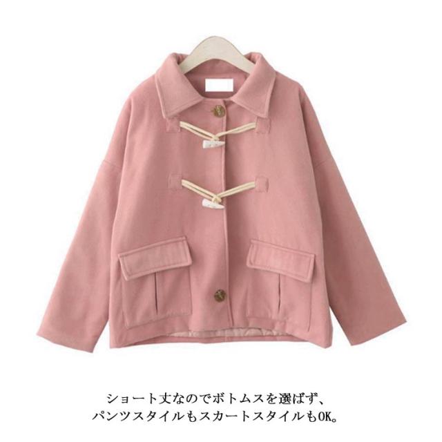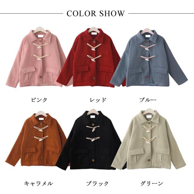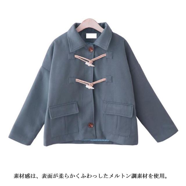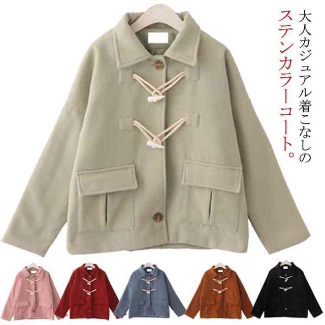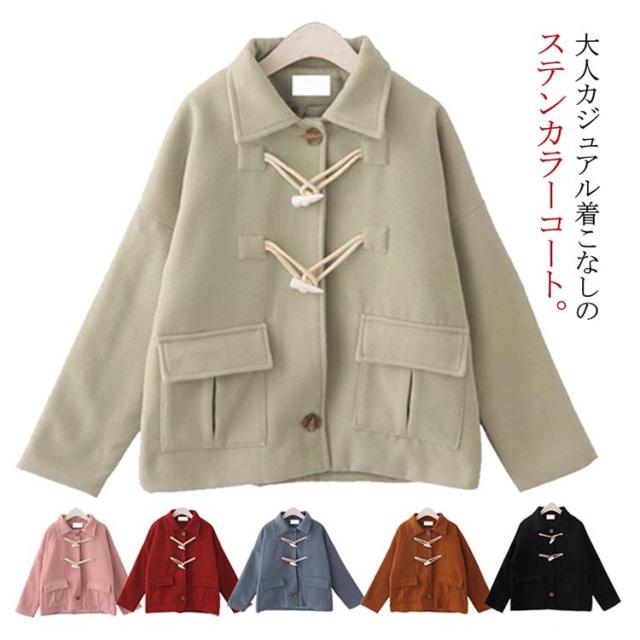 全6色展開!ステンカラーコート レディース アウター コート ショート丈 ダッフルコート トグルボタン カジュアルコート ポケット付き メルトン 秋冬 ナチュラル 可愛い