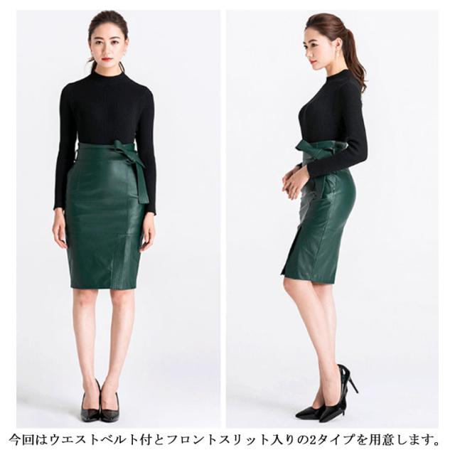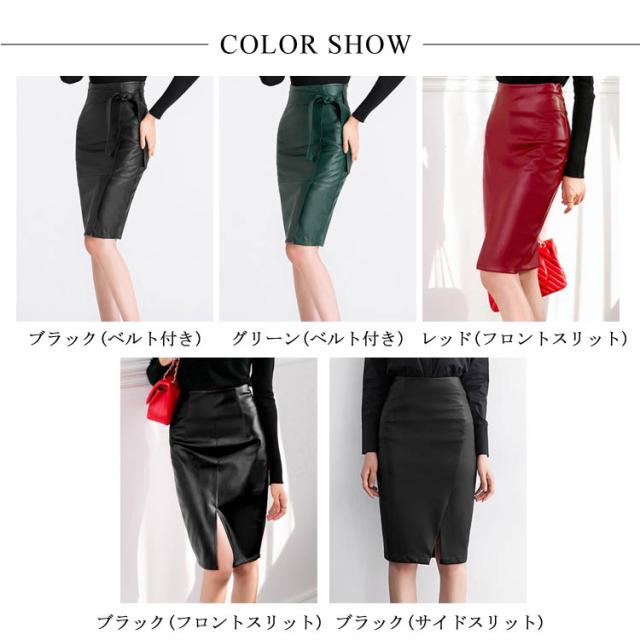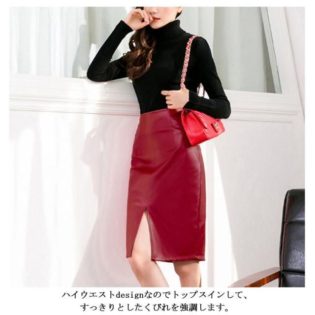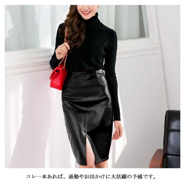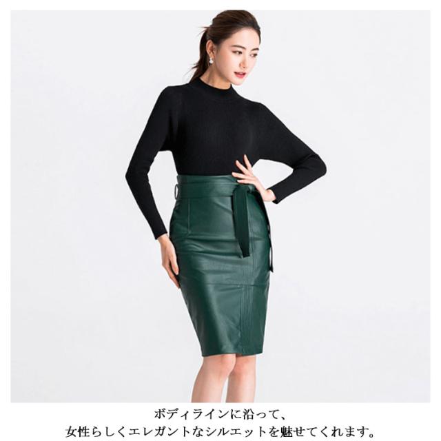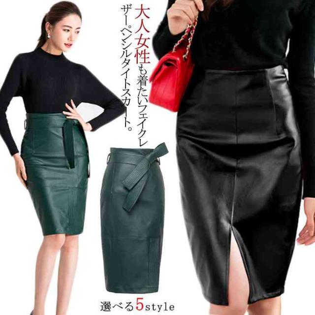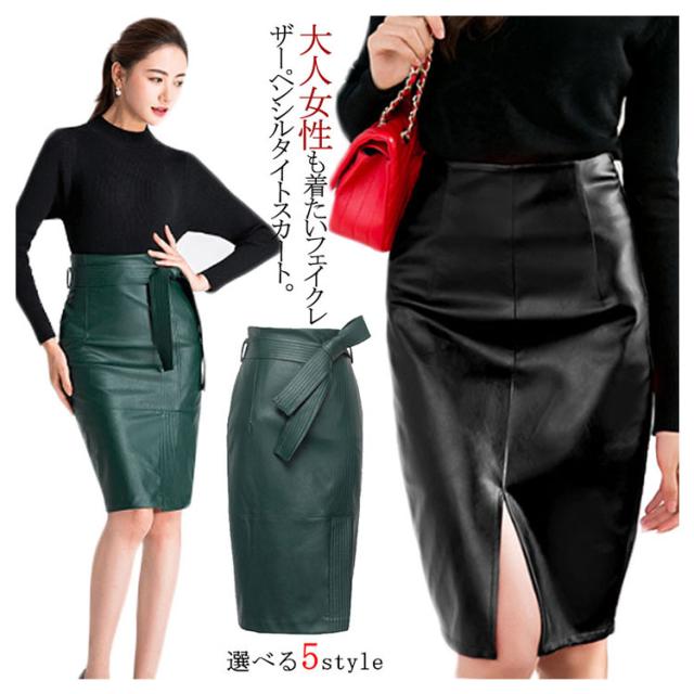 タイトスカート レディース フェイクレザー ペンシルスカート 膝丈 美脚 秋冬