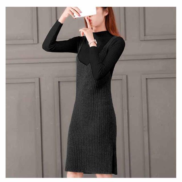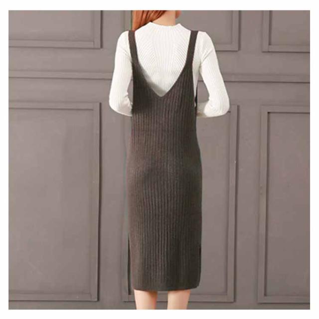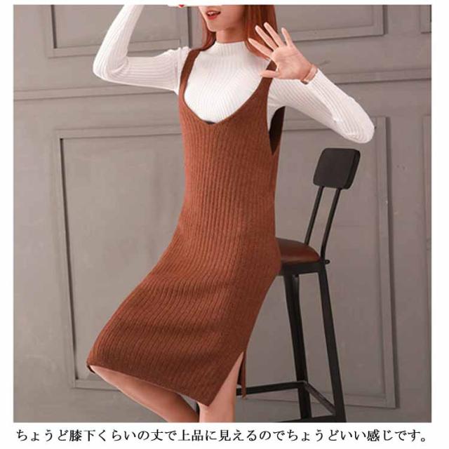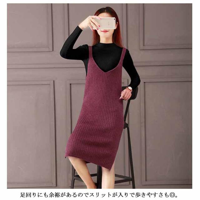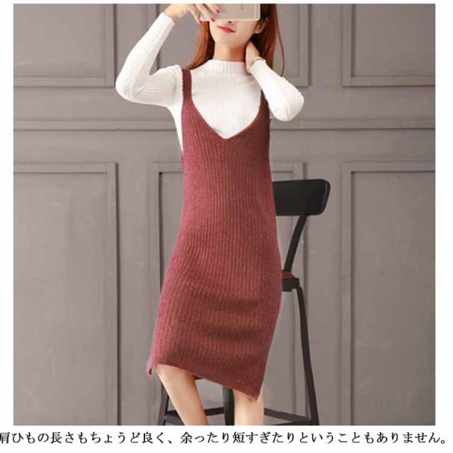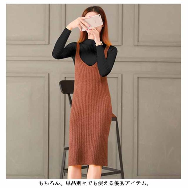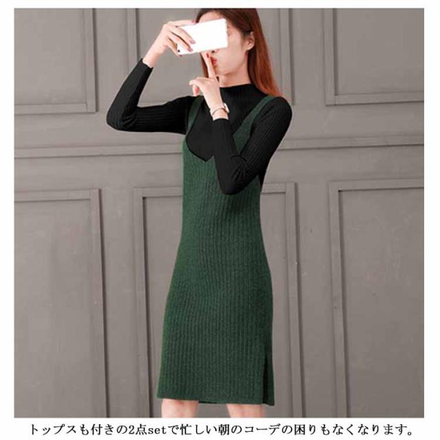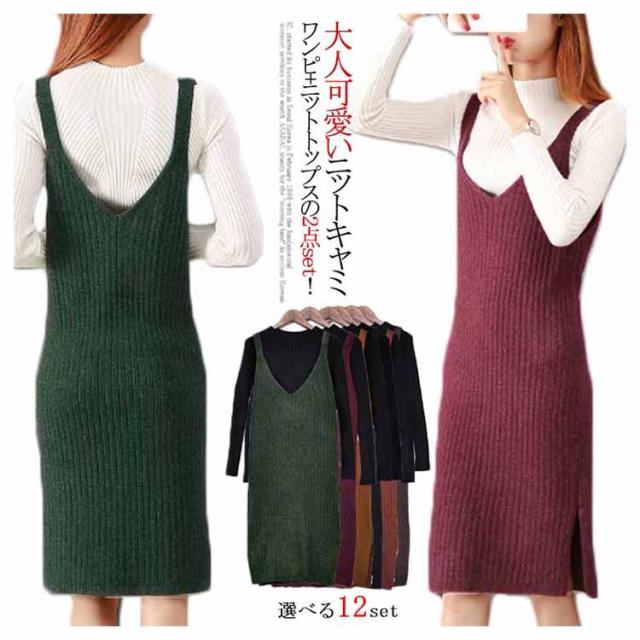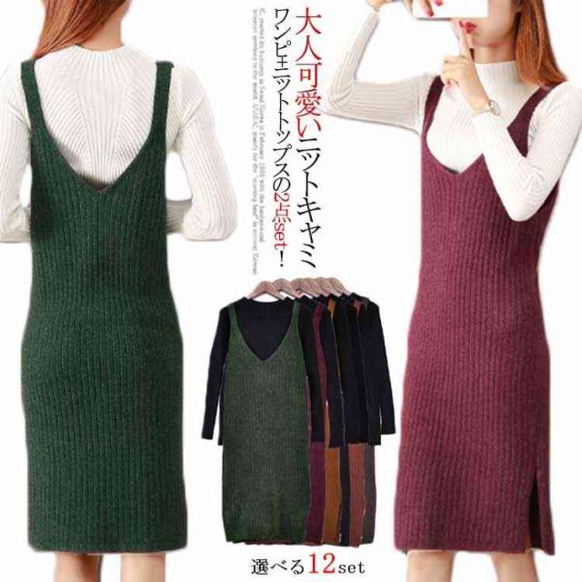 レディース ニット2点set ニットキャミソールワンピース ニットトップス シンプル 秋 冬
